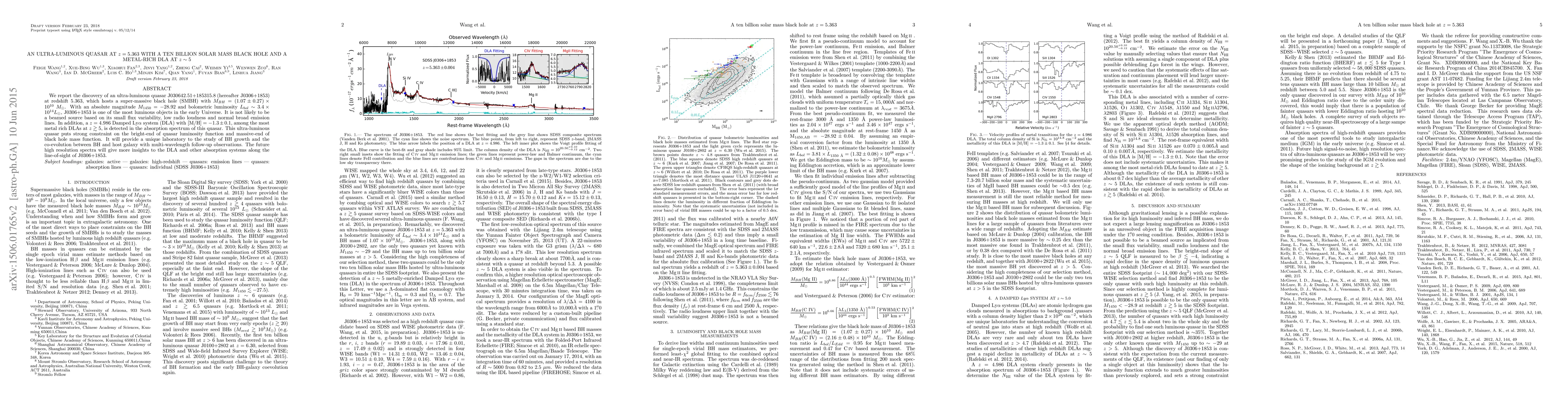 This paper discovers an ultra-luminous quasar at z=5.363 with a massive black hole and a metal-rich DLA, providing insights into the early Universe's bright-end luminosity function and black hole mass function.