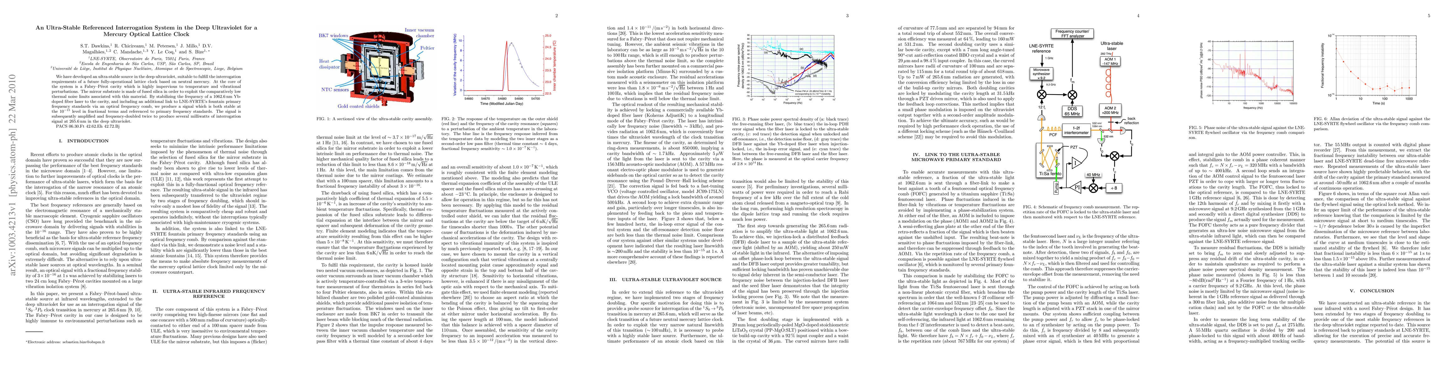 This paper describes the development of an ultra-stable deep ultraviolet interrogation system for a mercury optical lattice clock, utilizing a highly stable Fabry-Pérot cavity and a Yb-doped fiber laser, achieving stability at the 1E-15 level and referencing it to primary frequency standards. The system produces a powerful deep ultraviolet signal at 265.6 nm for clock interrogation.
