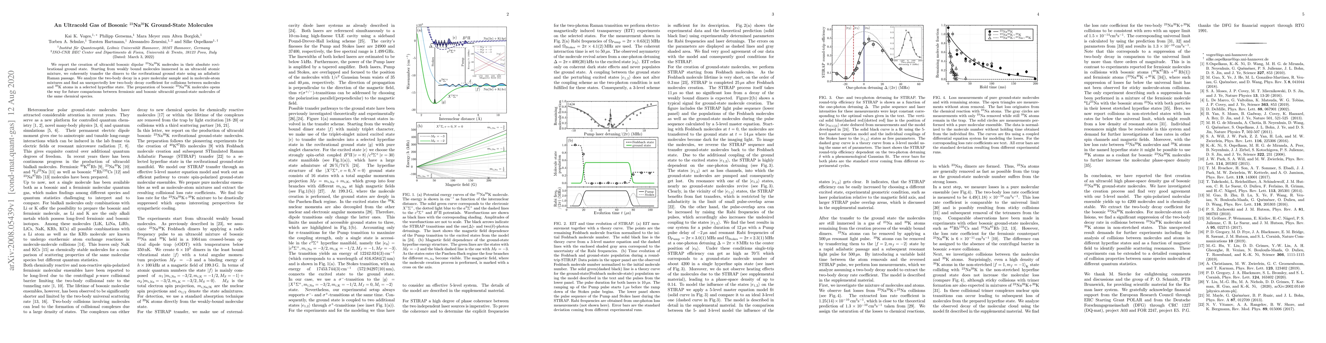 This paper reports the successful creation of ultracold bosonic $^{23}\textrm{Na}^{39}\textrm{K}$ molecules in their ground state using adiabatic Raman passage, and reveals an unexpectedly low two-body decay coefficient for collisions involving these molecules and $^{39}\textrm{K}$ atoms. This achievement facilitates future studies comparing fermionic and bosonic ultracold ground-state molecules of the same species.