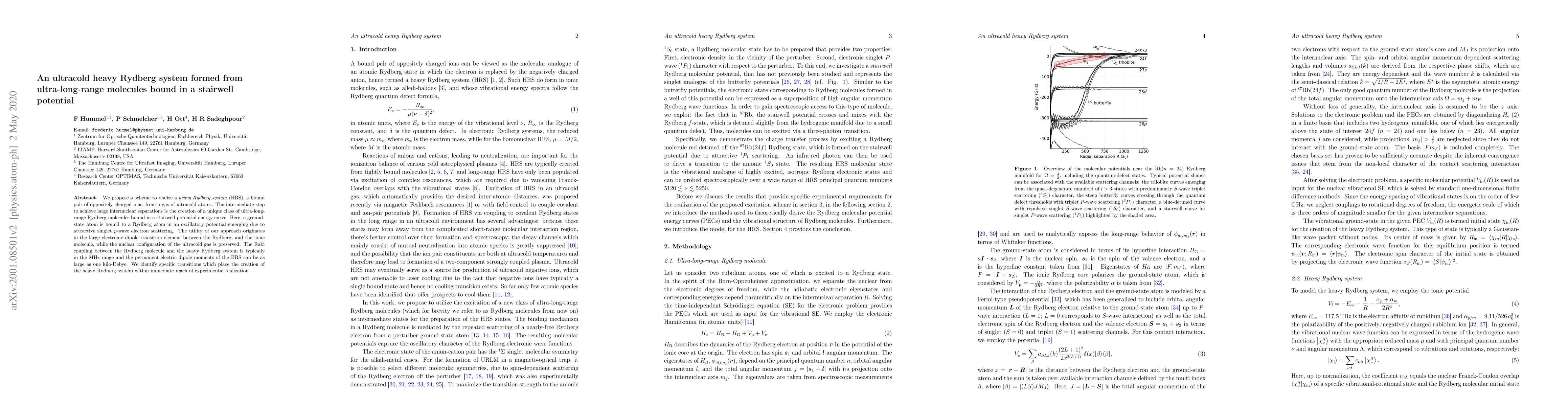 We propose a scheme to realize a heavy Rydberg system (HRS), a bound pair of oppositely charged ions, from a gas of ultracold atoms. The intermediate step to achieve large internuclear separations is the creation of a unique class of ultra-long-range Rydberg molecules bound in a stairwell potential energy curve. Here, a ground-state atom is bound to a Rydberg atom in an oscillatory potential emerging due to attractive singlet $p$-wave electron scattering. The utility of our approach originates in the large electronic dipole transition element between the Rydberg- and the ionic molecule, while the nuclear configuration of the ultracold gas is preserved. The Rabi coupling between the Rydberg molecule and the heavy Rydberg system is typically in the MHz range and the permanent electric dipole moments of the HRS can be as large as one kilo-Debye. We identify specific transitions which place the creation of the heavy Rydberg system within immediate reach of experimental realization.