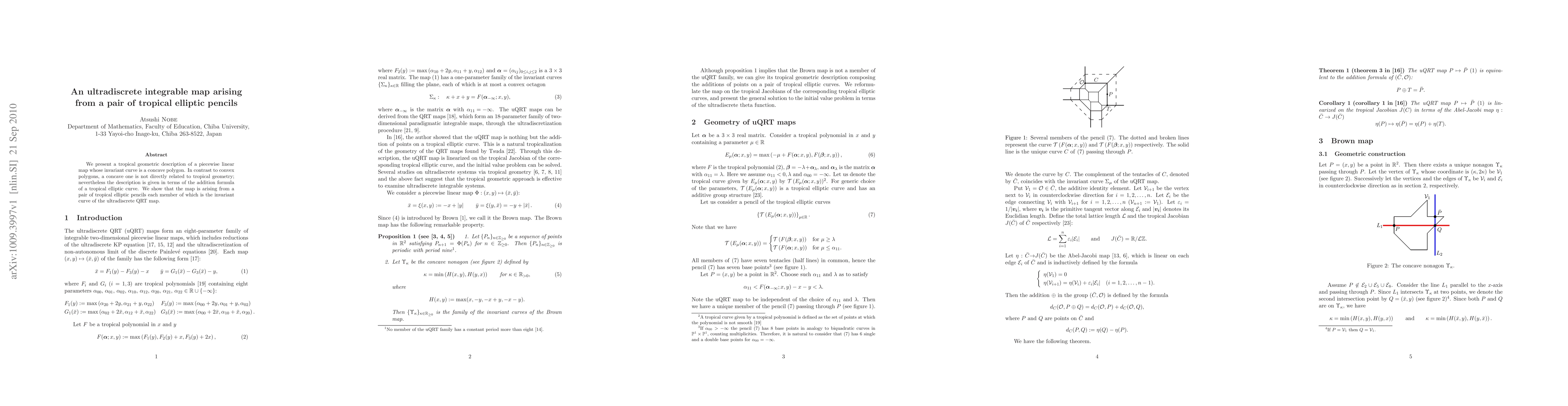The research presents a tropical geometric description of a piecewise linear map whose invariant curve is a concave polygon, derived from a pair of tropical elliptic pencils.