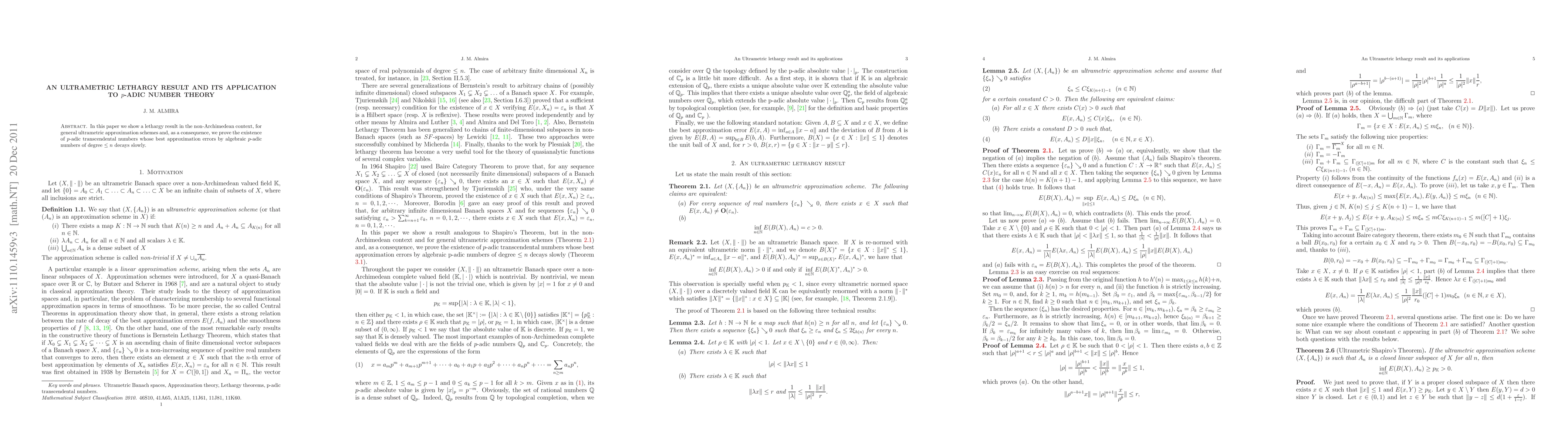 The discovery relies on ultrametric lethargy results, shedding new light on p-adic number theory and its applications.