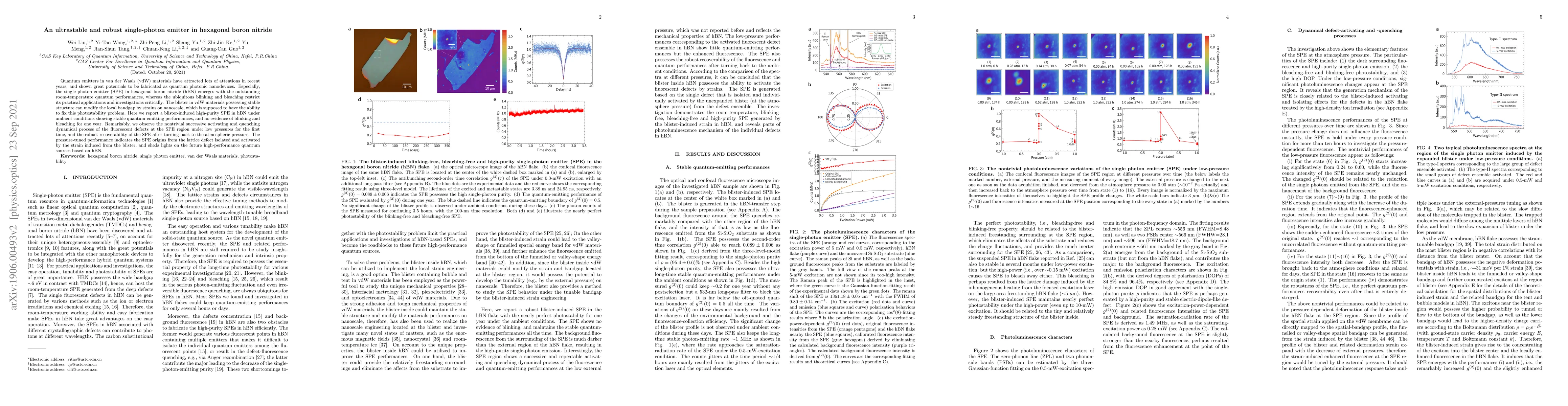 Quantum emitters in van der Waals (vdW) materials have attracted lots of attentions in recent years, and shown great potentials to be fabricated as quantum photonic nanodevices. Especially, the single photon emitter (SPE) in hexagonal boron nitride (hBN) emerges with the outstanding room-temperature quantum performances, whereas the ubiquitous blinking and bleaching restrict its practical applications and investigations critically. The blister in vdW materials possessing stable structure can modify the local bandgap by strains on nanoscale, which is supposed to have the ability to fix this photostability problem. Here we report a blister-induced high-purity SPE in hBN under ambient conditions showing stable quantum-emitting performances, and no evidence of blinking and bleaching for one year. Remarkably, we observe the nontrivial successive activating and quenching dynamical process of the fluorescent defects at the SPE region under low pressures for the first time, and the robust recoverability of the SPE after turning back to the atmospheric pressure. The pressure-tuned performance indicates the SPE origins from the lattice defect isolated and activated by the strain induced from the blister, and sheds lights on the future high-performance quantum sources based on hBN.