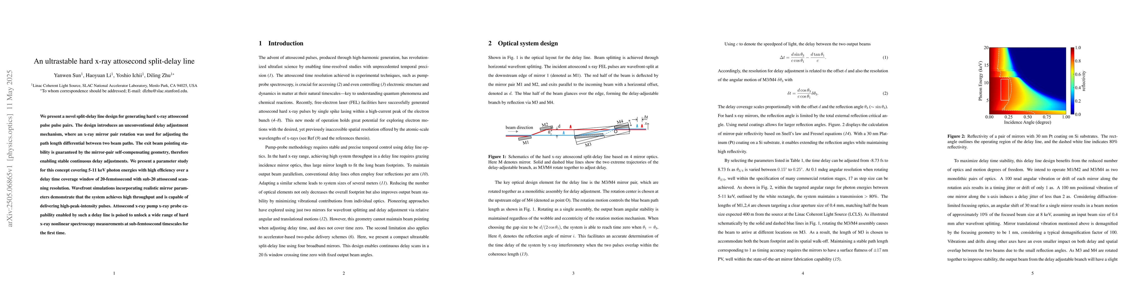 The research presents a novel split-delay line design utilizing an x-ray mirror pair rotation mechanism for adjusting path length differential between two beam paths, ensuring stable continuous delay adjustments through self-compensating geometry.