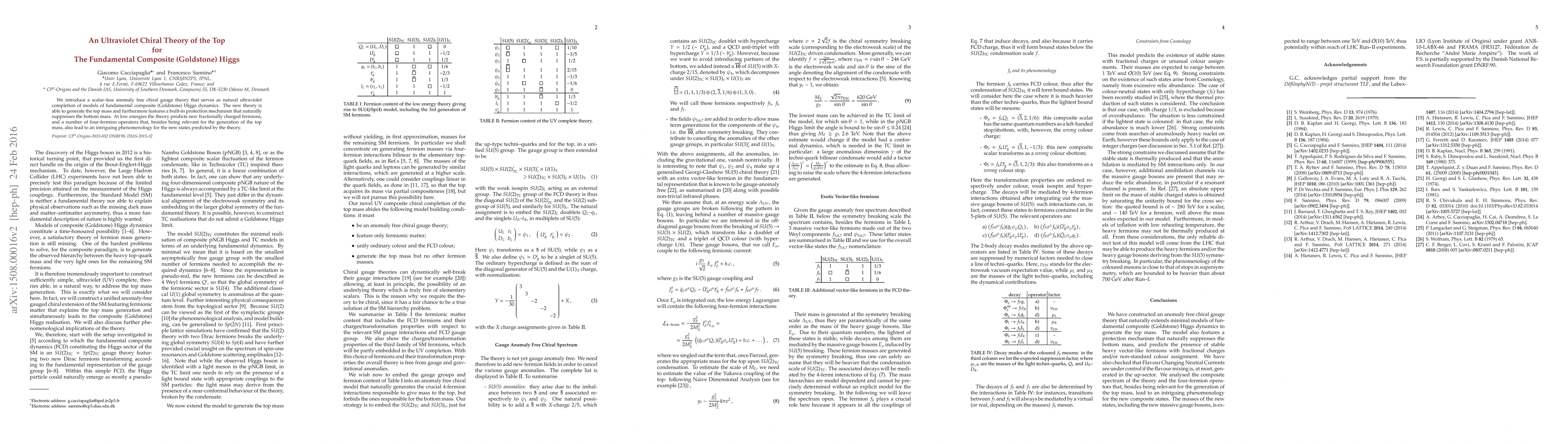 This paper proposes a scalar-less chiral gauge theory that provides a natural ultraviolet completion for fundamental composite Higgs models, generating the top mass and suppressing the bottom mass, while predicting new fractionally charged fermions and four-fermion operators with unique phenomenological implications.