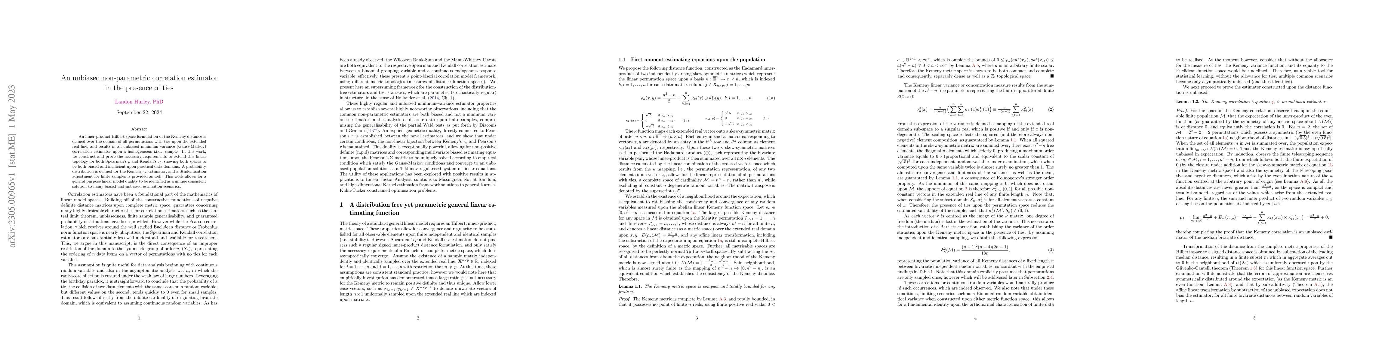 This paper introduces an unbiased minimum variance correlation estimator using the Kemeny distance in an inner-product Hilbert space, addressing the challenge of ties in data. It extends this approach to show that Spearman's and Kendall's measures are biased and inefficient, proposing a Studentisation adjustment for practical applications.