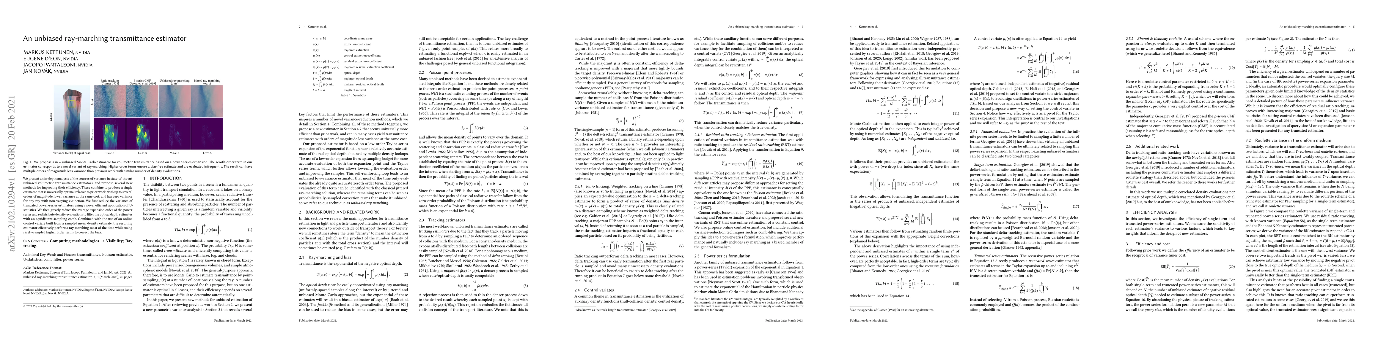 We present an in-depth analysis of the sources of variance in state-of-the-art unbiased volumetric transmittance estimators, and propose several new methods for improving their efficiency. These combine to produce a single estimator that is universally optimal relative to prior work, with up to several orders of magnitude lower variance at the same cost, and has zero variance for any ray with non-varying extinction. We first reduce the variance of truncated power-series estimators using a novel efficient application of U-statistics. We then greatly reduce the average expansion order of the power series and redistribute density evaluations to filter the optical depth estimates with an equidistant sampling comb. Combined with the use of an online control variate built from a sampled mean density estimate, the resulting estimator effectively performs ray marching most of the time while using rarely-sampled higher order terms to correct the bias.