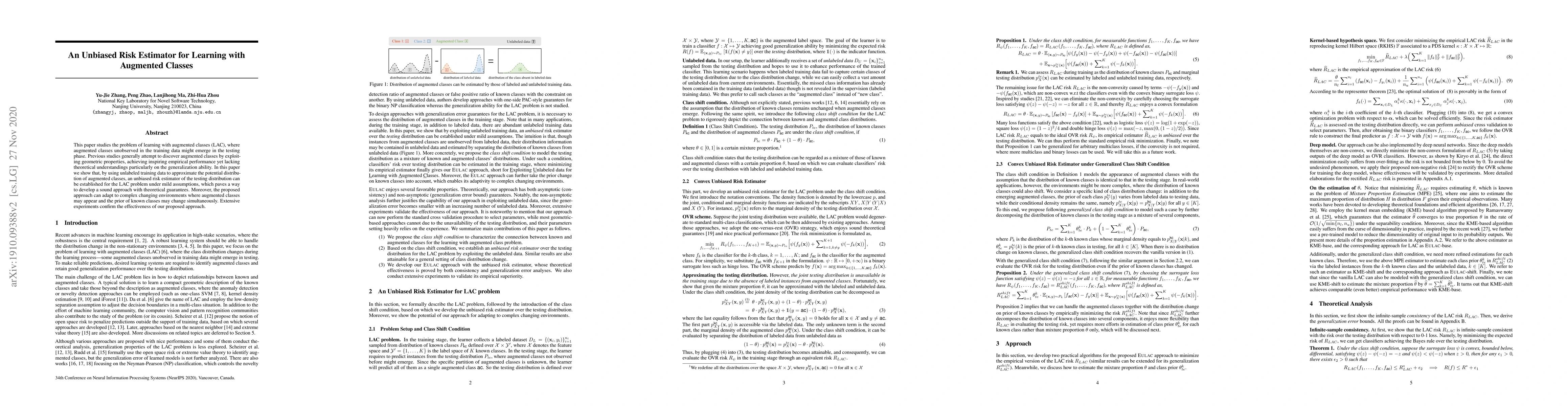 Researchers developed an unbiased risk estimator for learning with augmented classes, allowing for theoretical guarantees in a changing environment. Their approach uses unlabeled training data to approximate the potential distribution of augmented classes.