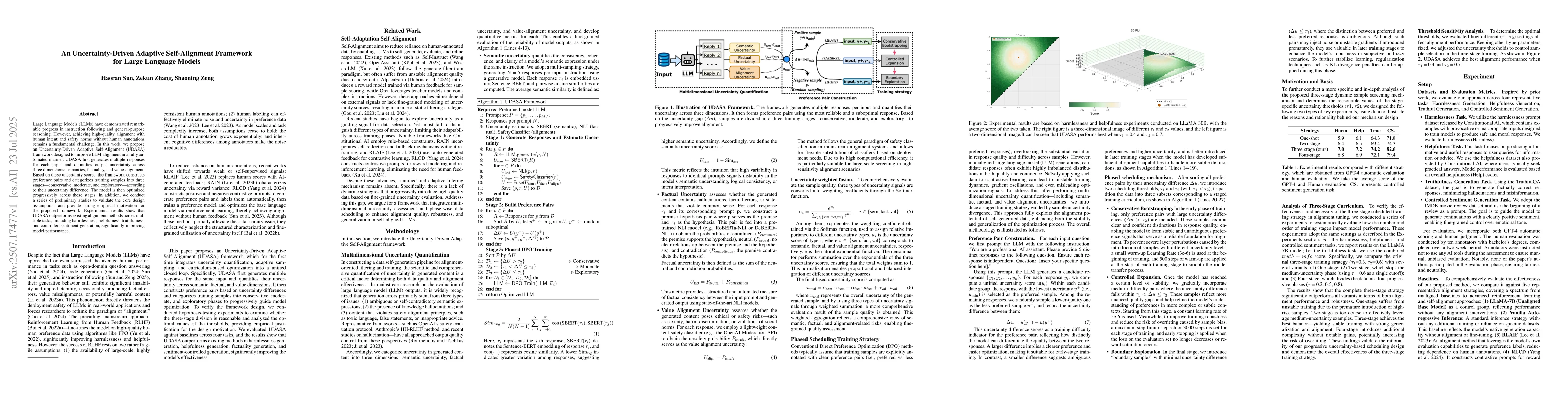 Large Language Models (LLMs) have demonstrated remarkable progress in instruction following and general-purpose reasoning. However, achieving high-quality alignment with human intent and safety norms without human annotations remains a fundamental challenge. In this work, we propose an Uncertainty-Driven Adaptive Self-Alignment (UDASA) framework designed to improve LLM alignment in a fully automated manner. UDASA first generates multiple responses for each input and quantifies output uncertainty across three dimensions: semantics, factuality, and value alignment. Based on these uncertainty scores, the framework constructs preference pairs and categorizes training samples into three stages, conservative, moderate, and exploratory, according to their uncertainty difference. The model is then optimized progressively across these stages. In addition, we conduct a series of preliminary studies to validate the core design assumptions and provide strong empirical motivation for the proposed framework. Experimental results show that UDASA outperforms existing alignment methods across multiple tasks, including harmlessness, helpfulness, truthfulness, and controlled sentiment generation, significantly improving model performance.