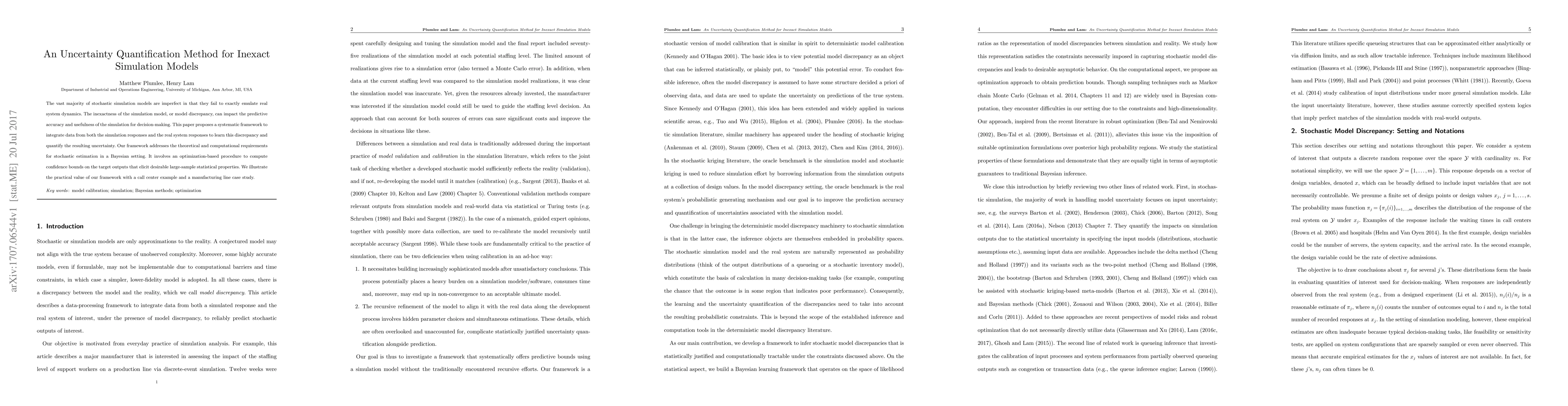 A new framework is proposed to quantify uncertainty in imperfect simulation models, combining real system responses with simulated data to learn model discrepancy and improve predictive accuracy.