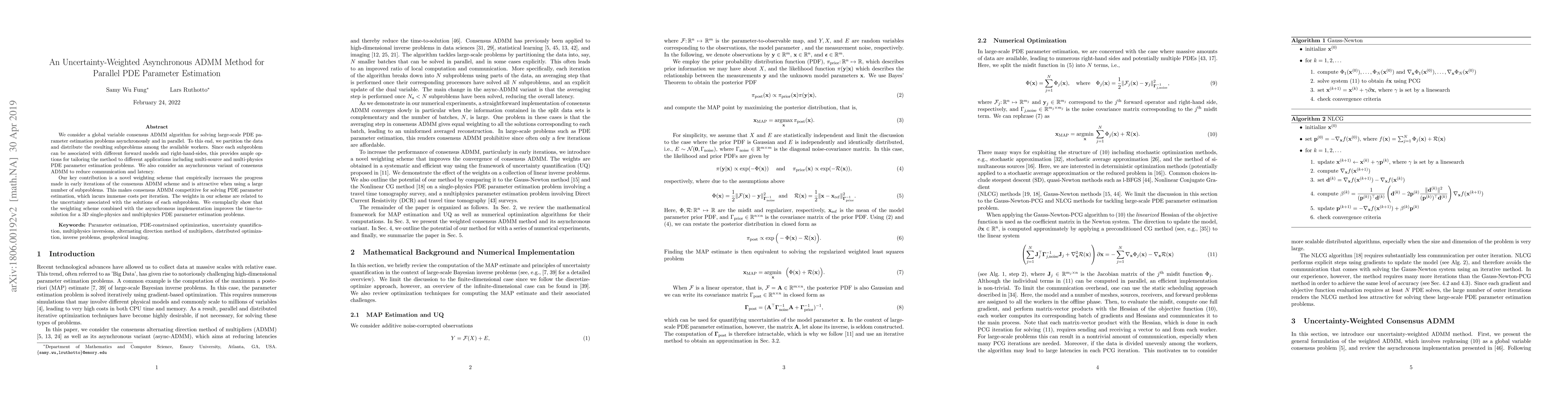 A new method for solving large-scale partial differential equation (PDE) parameter estimation problems is proposed, which combines asynchronous parallelism with an uncertainty-weighted ADMM algorithm to improve solution time.