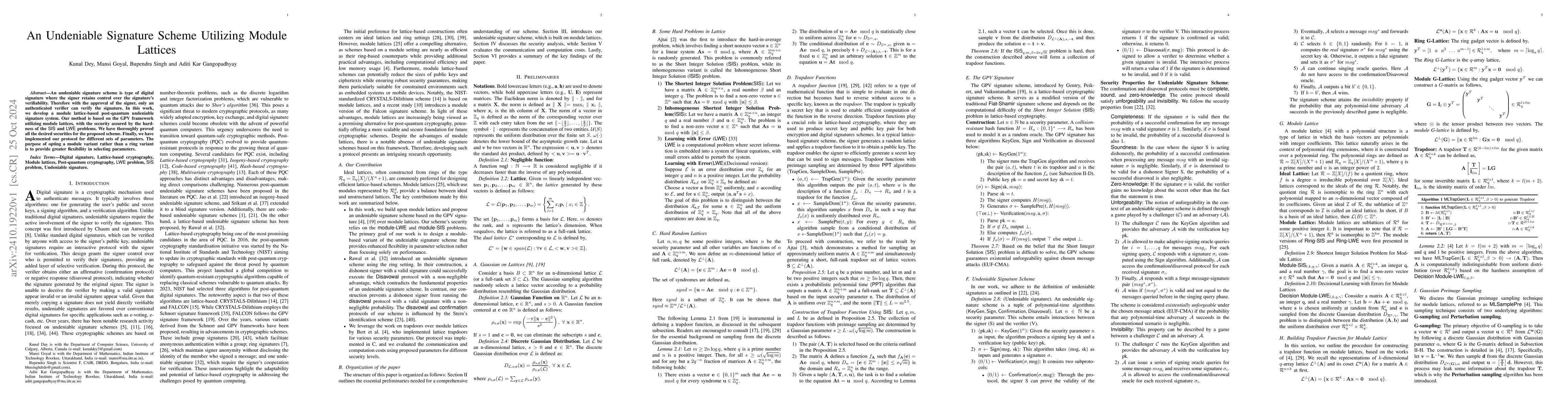 This paper presents a post-quantum undeniable signature scheme based on module lattices, leveraging the GPV framework. The security is grounded in the SIS and LWE problems, and the scheme offers greater parameter flexibility compared to ring lattice variants.