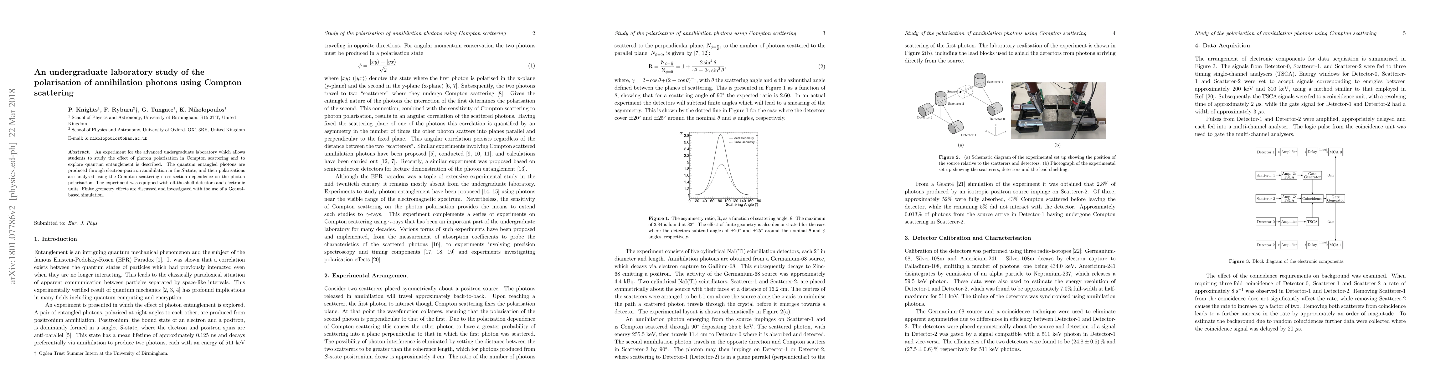 This undergraduate laboratory experiment investigates photon polarisation in Compton scattering, using quantum entangled photons from electron-positron annihilation. The study explores quantum entanglement and employs a Geant4-based simulation to discuss finite geometry effects.