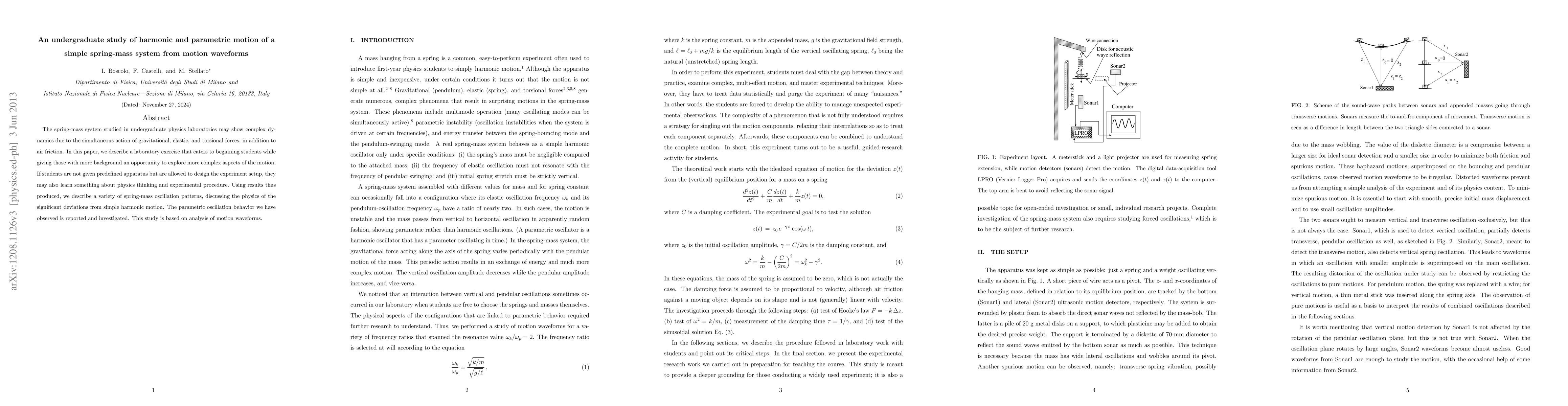 This paper details a laboratory exercise for undergraduates to explore the complex dynamics of a spring-mass system, including harmonic and parametric oscillations, through analyzing motion waveforms. It emphasizes the importance of experimental design and understanding deviations from simple harmonic motion due to various forces.