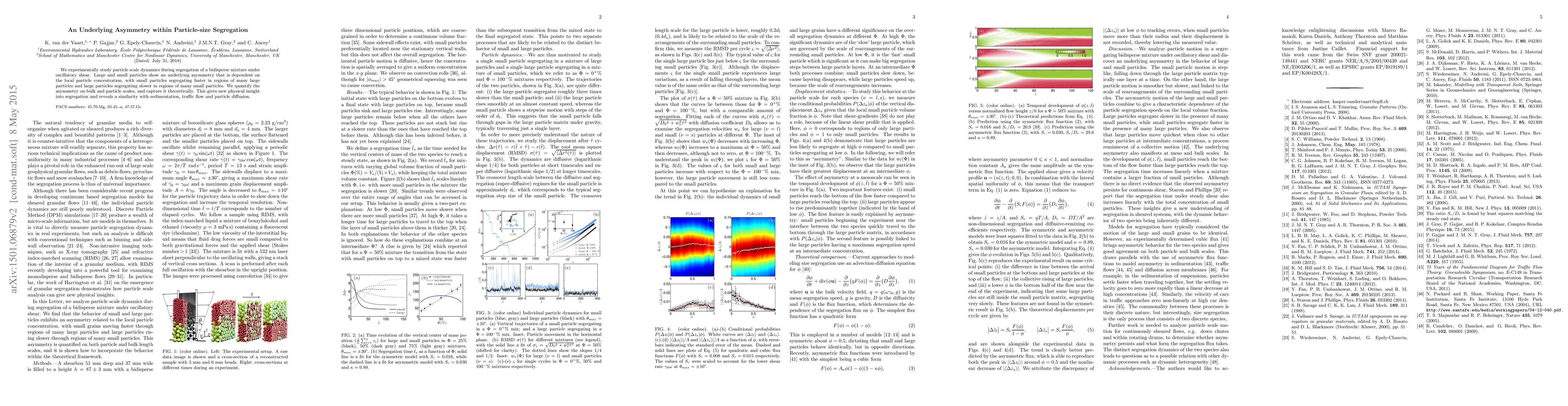 We experimentally study particle scale dynamics during segregation of a bidisperse mixture under oscillatory shear. Large and small particles show an underlying asymmetry that is dependent on the local particle concentration, with small particles segregating faster in regions of many large particles and large particles segregating slower in regions of many small particles. We quantify the asymmetry on bulk and particle scales, and capture it theoretically. This gives new physical insight into segregation and reveals a similarity with sedimentation, traffic flow and particle diffusion.