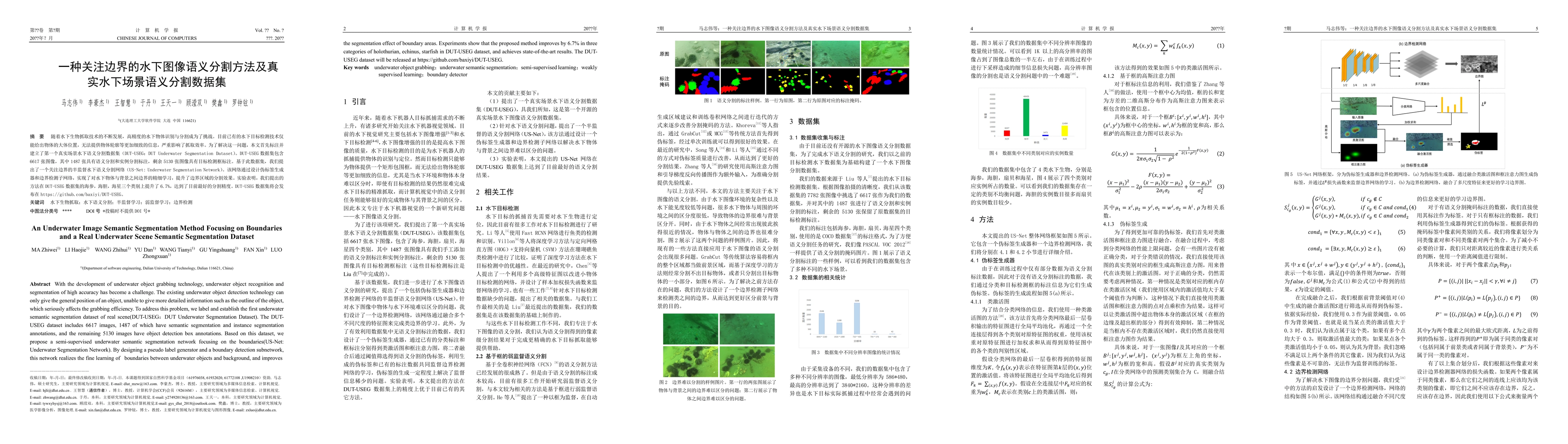 This paper introduces a new underwater semantic segmentation dataset, DUT-USEG, and a semi-supervised segmentation network, US-Net, designed to improve boundary detection in underwater scenes. The method achieves a 6.7% improvement in segmentation accuracy for specific marine species, demonstrating state-of-the-art performance.