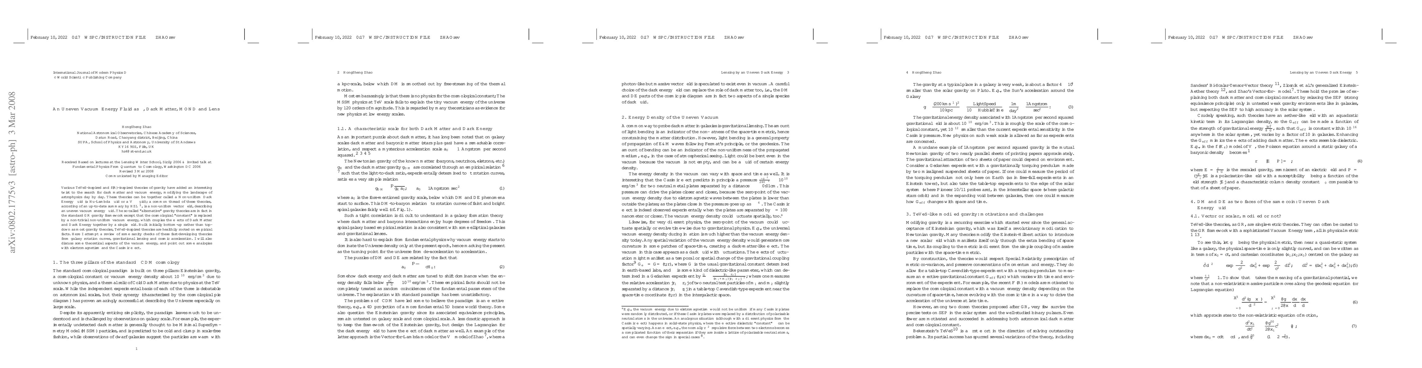 This paper reviews TeVeS-inspired and f(R)-inspired theories of gravity, proposing a non-uniform vacuum energy fluid that unifies dark matter and dark energy. It examines the empirical validity of these theories through galaxy rotation curves, gravitational lensing, and cosmic acceleration, while also drawing analogies to electromagnetism and the Casimir effect.