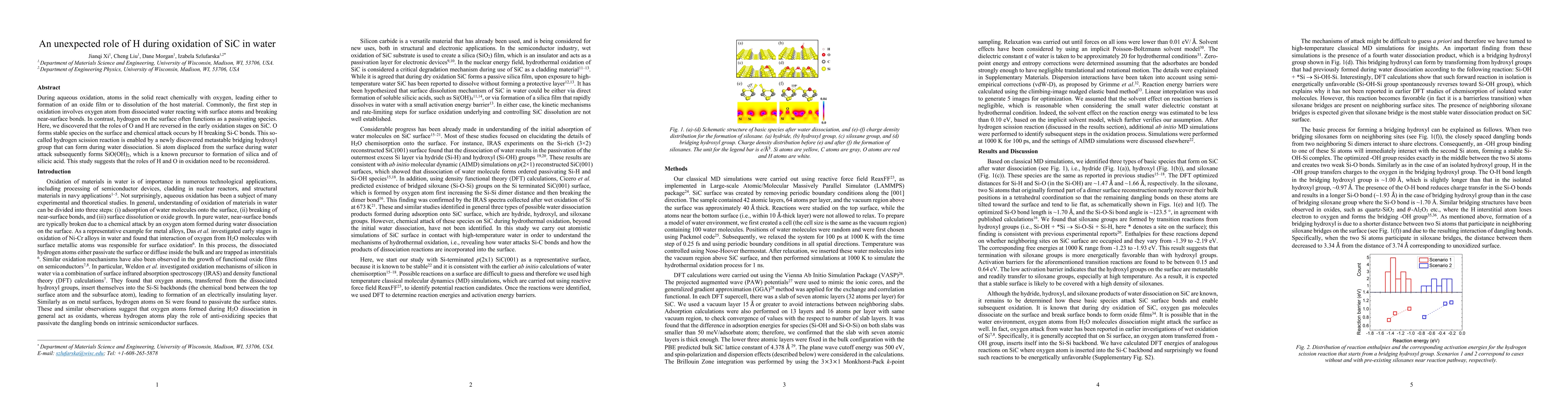 During aqueous corrosion, atoms in the solid react chemically with oxygen, leading either to the formation of an oxide film or to the dissolution of the host material. Commonly, the first step in corrosion involves an oxygen atom from the dissociated water that reacts with the surface atoms and breaks near surface bonds. In contrast, hydrogen on the surface often functions as a passivating species. Here, we discovered that the roles of O and H are reversed in the early corrosion stages on a Si terminated SiC surface. O forms stable species on the surface, and chemical attack occurs by H that breaks the Si-C bonds. This so-called hydrogen scission reaction is enabled by a newly discovered metastable bridging hydroxyl group that can form during water dissociation. The Si atom that is displaced from the surface during water attack subsequently forms H2SiO3, which is a known precursor to the formation of silica and silicic acid. This study suggests that the roles of H and O in oxidation need to be reconsidered.