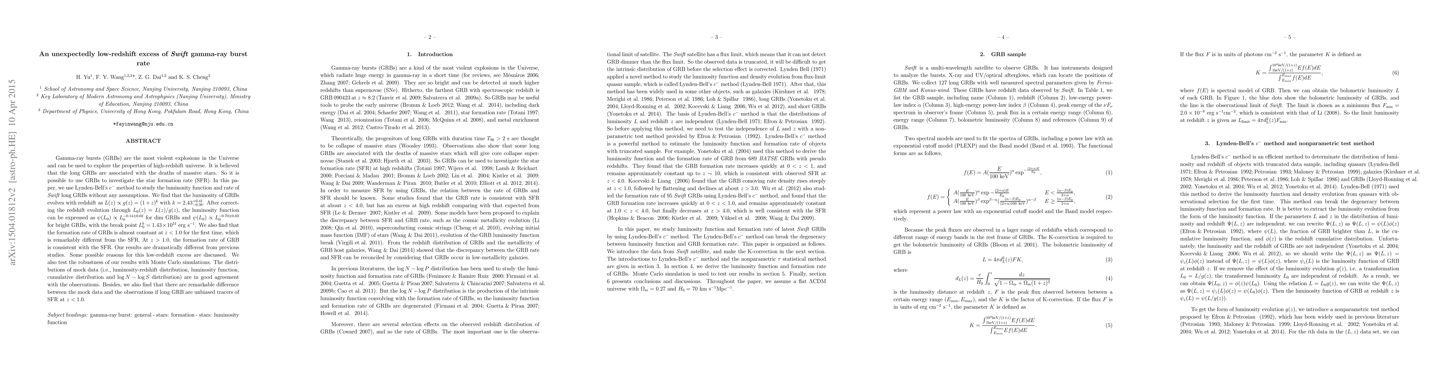 Gamma-ray bursts (GRBs) are the most violent explosions in the Universe and can be used to explore the properties of high-redshift universe. It is believed that the long GRBs are associated with the deaths of massive stars. So it is possible to use GRBs to investigate the star formation rate (SFR). In this paper, we use Lynden-Bell's $c^-$ method to study the luminosity function and rate of \emph{Swift} long GRBs without any assumptions. We find that the luminosity of GRBs evolves with redshift as $L(z)\propto g(z)=(1+z)^k$ with $k=2.43_{-0.38}^{+0.41}$. After correcting the redshift evolution through $L_0(z)=L(z)/g(z)$, the luminosity function can be expressed as $\psi(L_0)\propto L_0^{-0.14\pm0.02}$ for dim GRBs and $\psi(L_0)\propto L_0^{-0.70\pm0.03}$ for bright GRBs, with the break point $L_{0}^{b}=1.43\times10^{51}~{\rm erg~s^{-1}}$. We also find that the formation rate of GRBs is almost constant at $z<1.0$ for the first time, which is remarkably different from the SFR. At $z>1.0$, the formation rate of GRB is consistent with the SFR. Our results are dramatically different from previous studies. Some possible reasons for this low-redshift excess are discussed. We also test the robustness of our results with Monte Carlo simulations. The distributions of mock data (i.e., luminosity-redshift distribution, luminosity function, cumulative distribution and $\log N-\log S$ distribution) are in good agreement with the observations. Besides, we also find that there are remarkable difference between the mock data and the observations if long GRB are unbiased tracers of SFR at $z<1.0$.