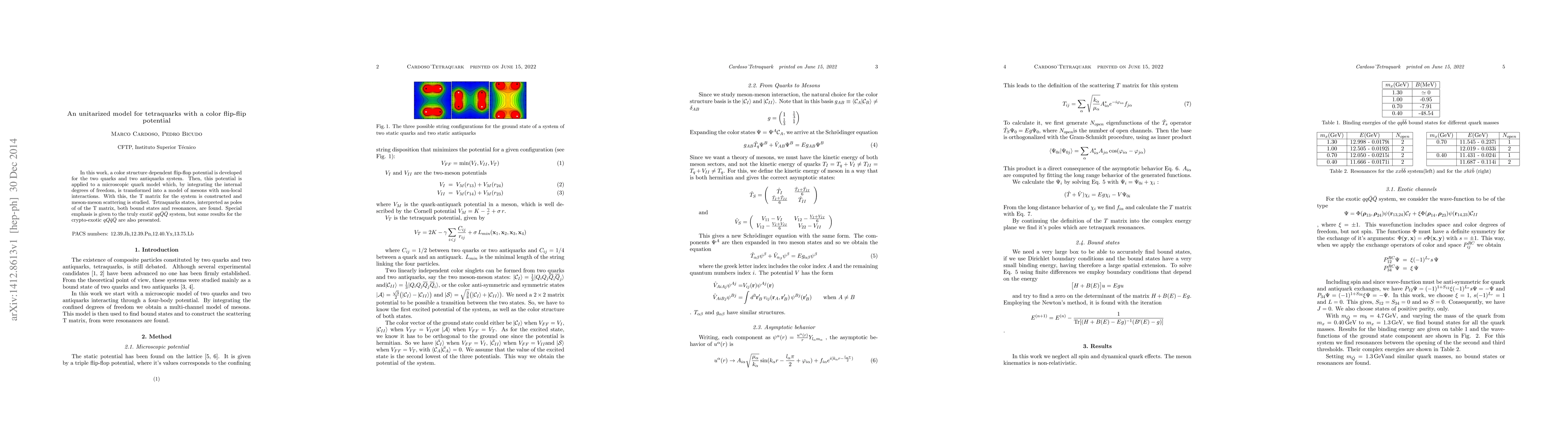 In this work, a color structure dependent flip-flop potential is developed for the two quarks and two antiquarks system. Then, this potential is applied to a microscopic quark model which, by integrating the internal degrees of freedom, is transformed into a model of mesons with non-local interactions. With this, the T matrix for the system is constructed and meson-meson scattering is studied. Tetraquarks states, interpreted as poles of of the T matrix, both bound states and resonances, are found. Special emphasis is given to the truly exotic $qq\bar{Q}\bar{Q}$ system, but some results for the crypto-exotic $qQ\bar{q}\bar{Q}$ are also presented.