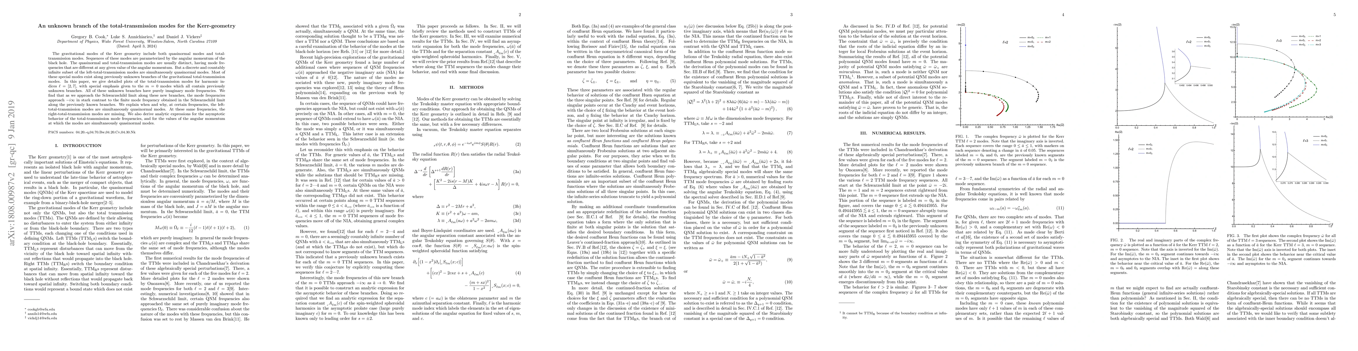 The gravitational modes of the Kerr geometry include both quasinormal modes and total-transmission modes. Sequences of these modes are parameterized by the angular momentum of the black hole. The quasinormal and total-transmission modes are usually distinct, having mode frequencies that are different at any given value of the angular momentum. But a discrete and countably infinite subset of the left-total-transmission modes are simultaneously quasinormal modes. Most of these special modes exist along previously unknown branches of the gravitational total-transmission modes. In this paper, we give detailed plots of the total-transmission modes for harmonic indices $\ell=[2,7]$, with special emphasis given to the $m=0$ modes which all contain previously unknown branches. All of these unknown branches have purely imaginary mode frequencies. We find that as we approach the Schwarzschild limit along these new branches, the mode frequencies approach $-i\infty$ in stark contrast to the finite mode frequency obtained in the Schwarzschild limit along the previously known branches. We explain when and why, at certain frequencies, the left-total-transmission modes are simultaneously quasinormal modes. At these same frequencies, the right-total-transmission modes are missing. We also derive analytic expressions for the asymptotic behavior of the total-transmission mode frequencies, and for the values of the angular momentum at which the modes are simultaneously quasinormal modes.