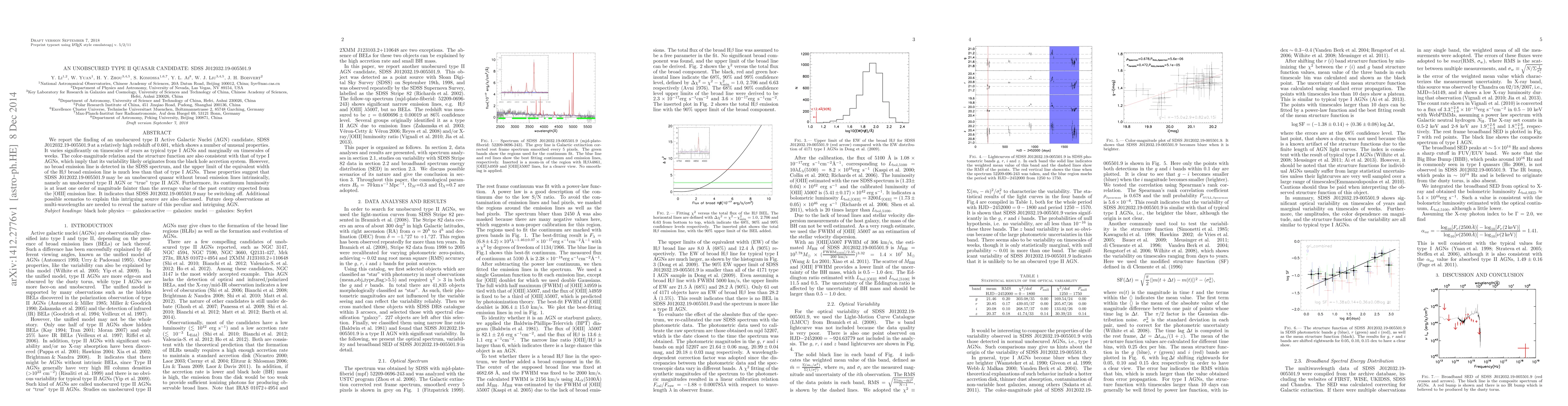 We report the finding of an unobscured type II Active Galactic Nuclei (AGN) candidate, SDSS J012032.19-005501.9 at a relatively high redshift of 0.601,which shows a number of unusual properties. It varies significantly on timescales of years as typical type I AGNs and marginally on timescales of weeks. The color-magnitude relation and the structure function are also consistent with that of type I AGNs, which imply that its variability likely originates from the black hole accretion system .However, no broad emission line is detected in the SDSS spectrum, and the upper limit of the equivalent width of the H$\rm \beta$ broad emission line is much less than that of type I AGNs. These properties suggest that SDSS J012032.19-005501.9 may be an unobscured quasar without broad emission lines intrinsically, namely an unobscured type II AGN or "true" type II AGN. Furthermore, its continuum luminosity is at least one order of magnitude fainter than the average value of thepast century expected from the [OIII] emission line. It indicates that SDSS J012032.19-005501.9 may be switching off. Additional possible scenarios to explain this intriguing source are also discussed. Future deep observations at multi-wavelengths are needed to reveal the nature of this peculiar and intriguing AGN.