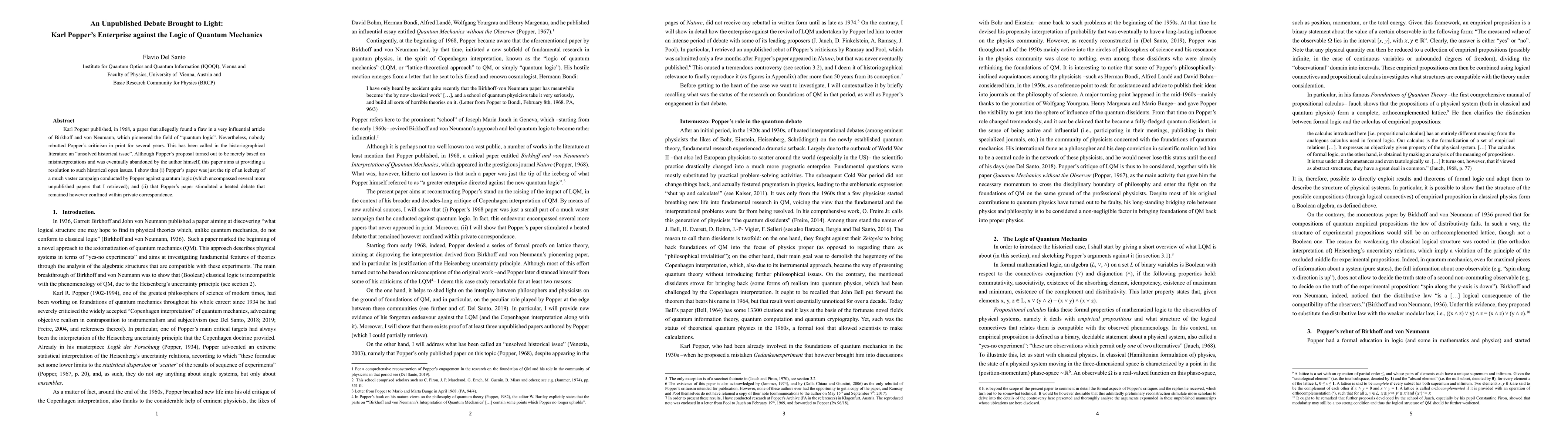Karl Popper published, in 1968, a paper that allegedly found a flaw in a very influential article of Birkhoff and von Neumann, which pioneered the field of "quantum logic". Nevertheless, nobody rebutted Popper's criticism in print for several years. This has been called in the historiographical literature an "unsolved historical issue". Although Popper's proposal turned out to be merely based on misinterpretations and was eventually abandoned by the author himself, this paper aims at providing a resolution to such historical open issues. I show that (i) Popper's paper was just the tip of an iceberg of a much vaster campaign conducted by Popper against quantum logic (which encompassed several more unpublished papers that I retrieved); and (ii) that Popper's paper stimulated a heated debate that remained however confined within private correspondence.