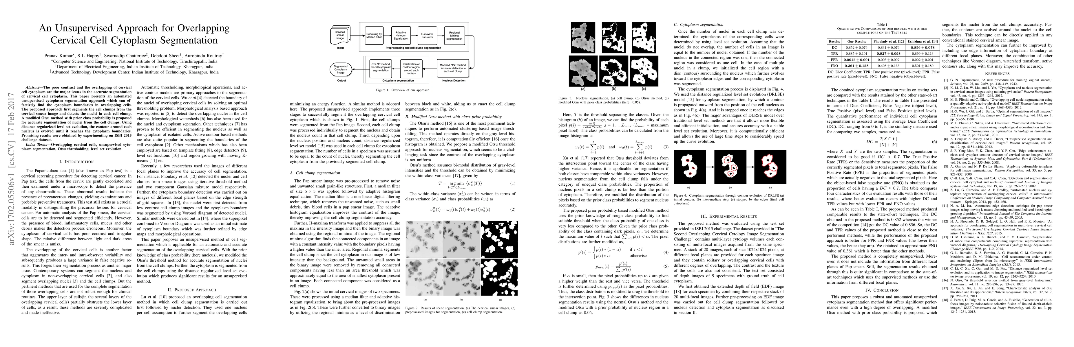 This paper introduces an unsupervised method for segmenting overlapping cervical cell cytoplasm, addressing issues of poor contrast and cell overlap. It employs a modified Otsu method for nucleus detection and distance regularized level set evolution to delineate cytoplasm boundaries, achieving promising results on the ISBI 2015 challenge dataset.