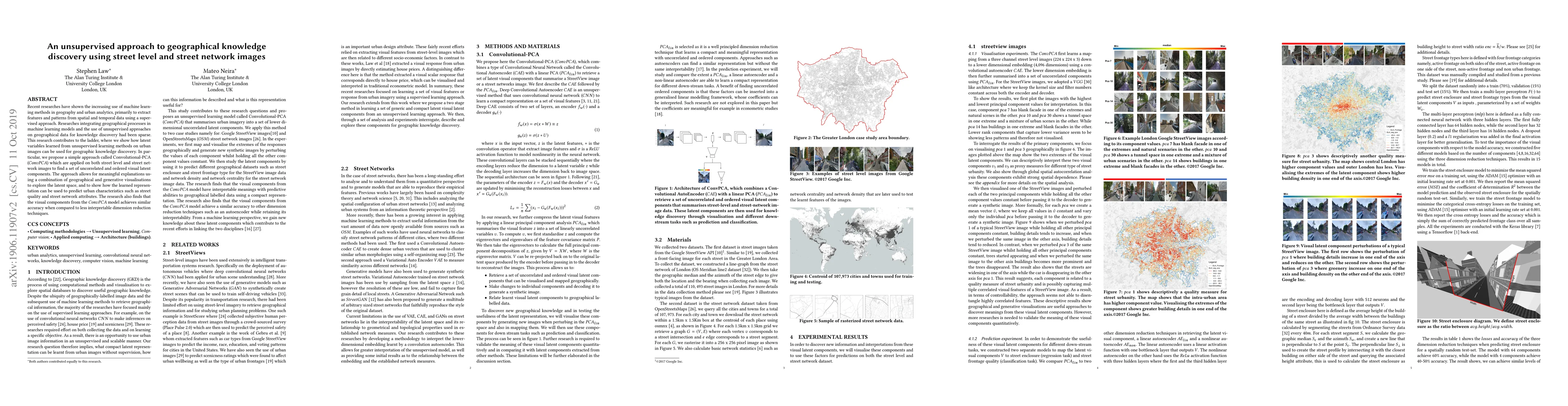 This paper proposes an unsupervised method, Convolutional-PCA (ConvPCA), for geographical knowledge discovery using street level and street network images. The ConvPCA approach identifies uncorrelated visual latent components, enabling meaningful geographical insights and urban characteristic predictions, with accuracy comparable to traditional dimension reduction techniques.