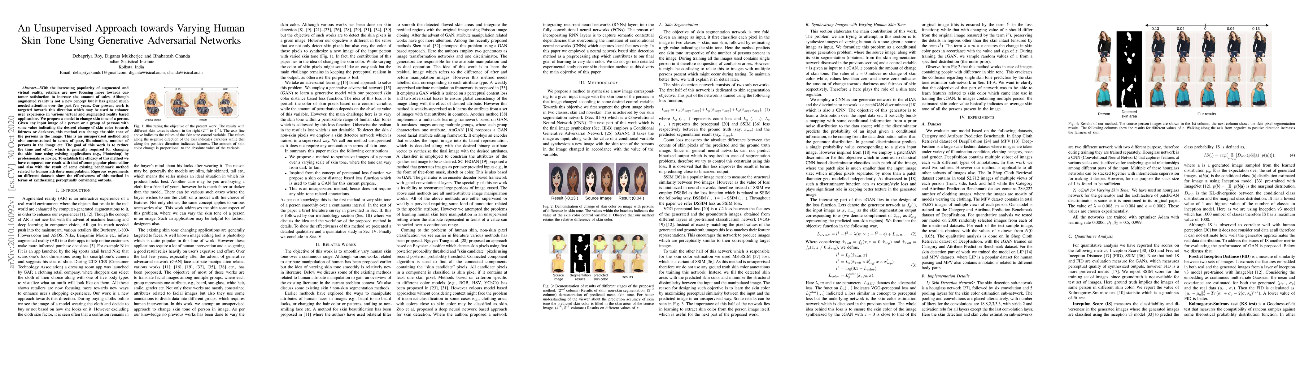 Researchers developed an unsupervised approach using Generative Adversarial Networks to change human skin tone in images, aiming to enhance user experience in virtual and augmented reality applications.