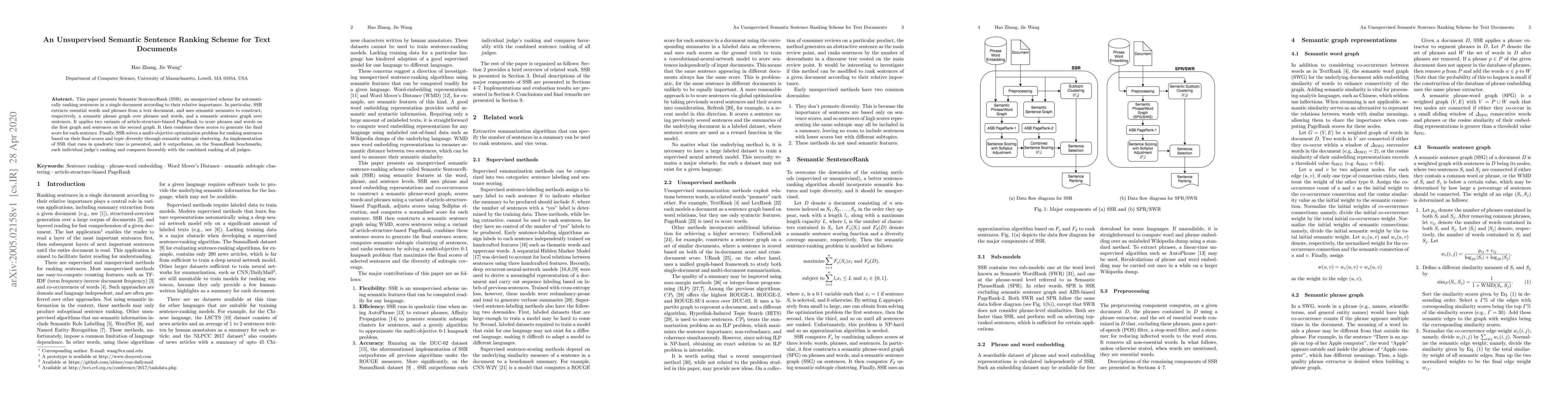This paper presents Semantic SentenceRank (SSR), an unsupervised scheme for automatically ranking sentences in a single document according to their relative importance. In particular, SSR extracts essential words and phrases from a text document, and uses semantic measures to construct, respectively, a semantic phrase graph over phrases and words, and a semantic sentence graph over sentences. It applies two variants of article-structure-biased PageRank to score phrases and words on the first graph and sentences on the second graph. It then combines these scores to generate the final score for each sentence. Finally, SSR solves a multi-objective optimization problem for ranking sentences based on their final scores and topic diversity through semantic subtopic clustering. An implementation of SSR that runs in quadratic time is presented, and it outperforms, on the SummBank benchmarks, each individual judge's ranking and compares favorably with the combined ranking of all judges.