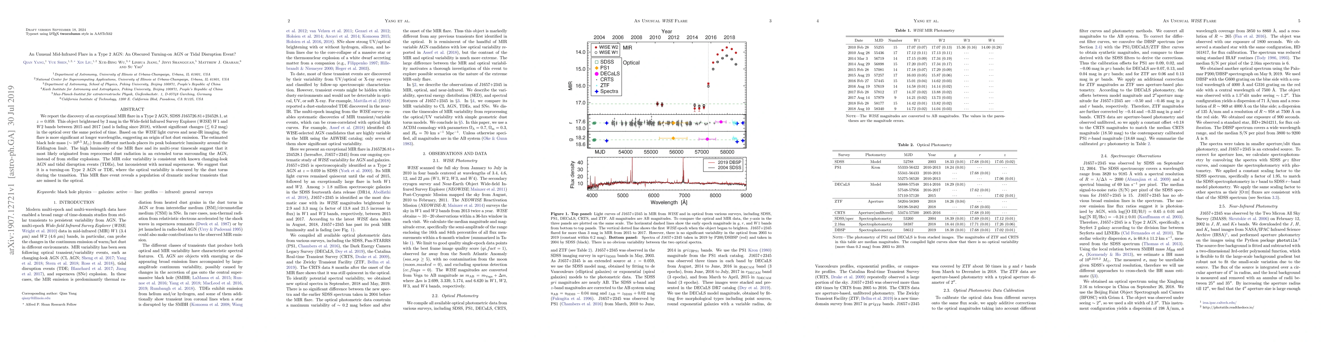 We report the discovery of an exceptional MIR flare in a Type 2 AGN, SDSS J165726.81+234528.1, at $z=0.059$. This object brightened by 3 mag in the Wide-field Infrared Survey Explorer (WISE) $W1$ and $W2$ bands between 2015 and 2017 (and is fading since 2018), without significant changes ($\lesssim$ 0.2 mag) in the optical over the same period of time. Based on the WISE light curves and near-IR imaging, the flare is more significant at longer wavelengths, suggesting an origin of hot dust emission. The estimated black hole mass ($\sim 10^{6.5}\,M_\odot$) from different methods places its peak bolometric luminosity around the Eddington limit. The high luminosity of the MIR flare and its multi-year timescale suggest that it most likely originated from reprocessed dust radiation in an extended torus surrounding the AGN, instead of from stellar explosions. The MIR color variability is consistent with known changing-look AGN and tidal disruption events (TDEs), but inconsistent with normal supernovae. We suggest that it is a turning-on Type 2 AGN or TDE, where the optical variability is obscured by the dust torus during the transition. This MIR flare event reveals a population of dramatic nuclear transients that are missed in the optical.