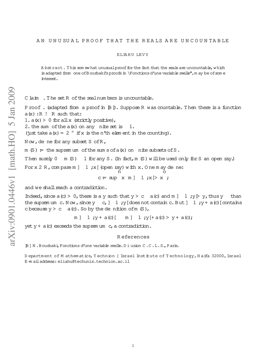 This somewhat unusual proof for the fact that the reals are uncountable, which is adapted from one of Bourbaki's proofs in "Fonctions d'une variable reelle", may be of some interest.