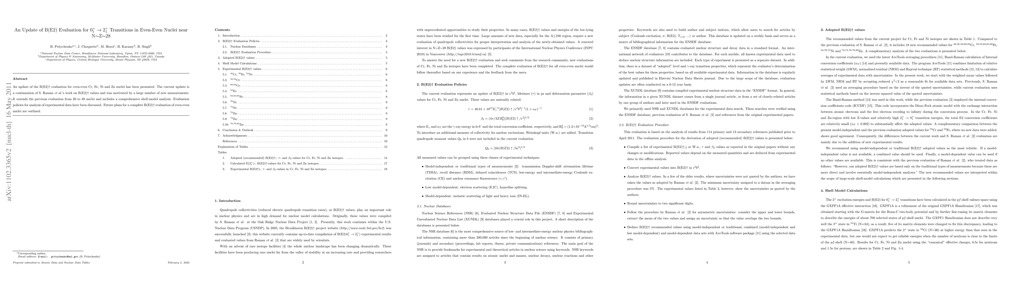 The update includes a continuation of previous work and aims to provide a complete evaluation of B(E2;0+1 -> 2+1) transitions in these nuclei, which is essential for understanding nuclear structure and reactions.