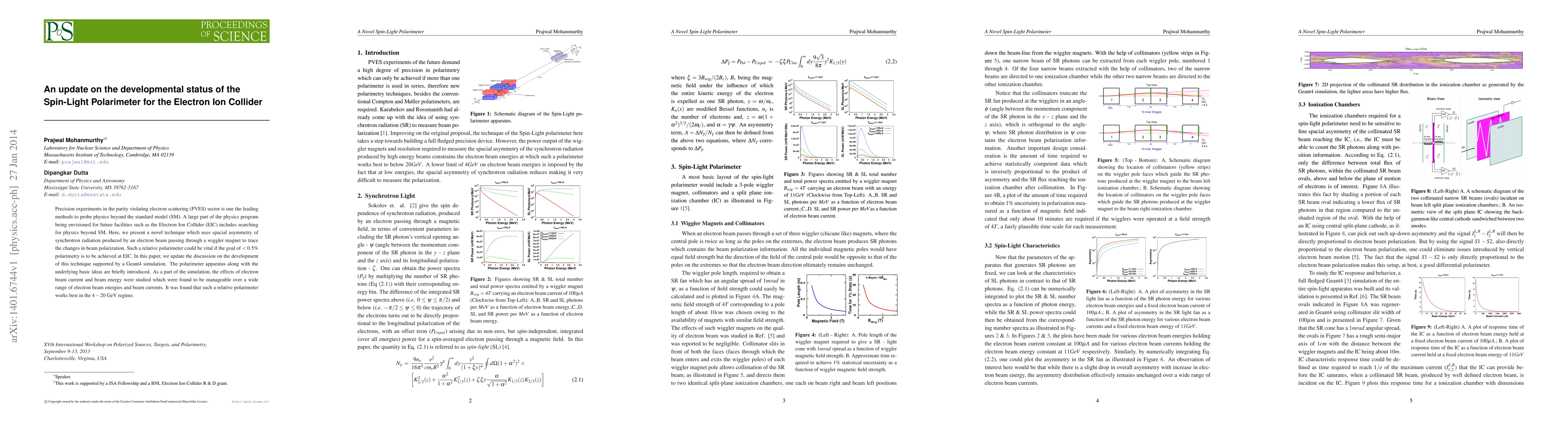 This paper updates the development of a Spin-Light Polarimeter for the Electron Ion Collider (EIC), utilizing synchrotron radiation asymmetry to track electron beam polarization changes. Simulation results indicate this relative polarimeter can function effectively within the 4-20 GeV energy range and across various beam currents.