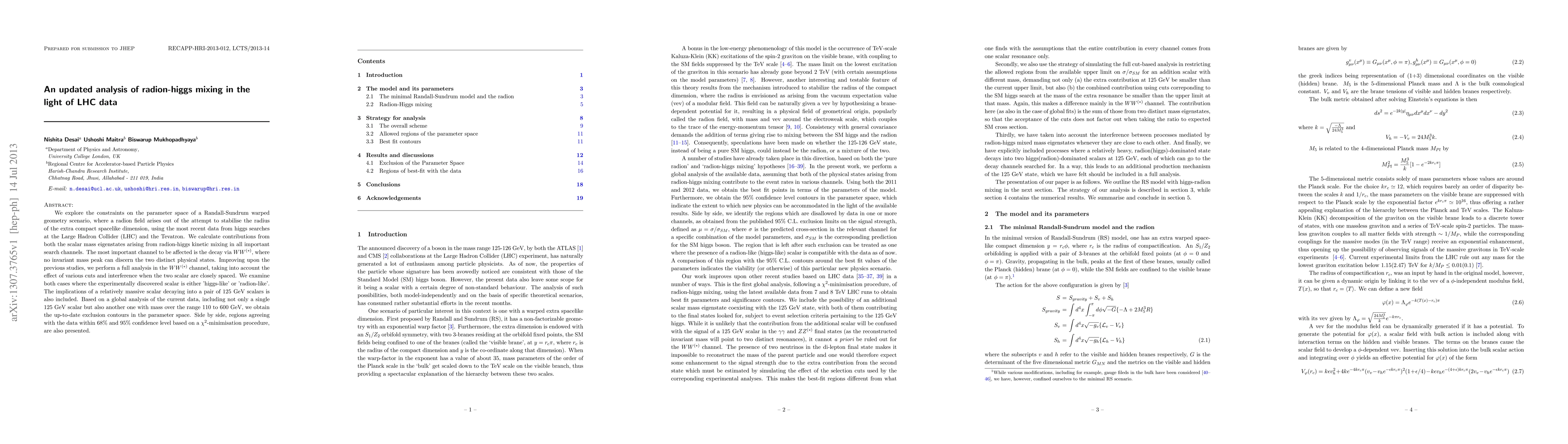Researchers analyzed LHC data to constrain a Randall-Sundrum warped geometry scenario, exploring constraints on radion-higgs mixing in the Higgs search channels.