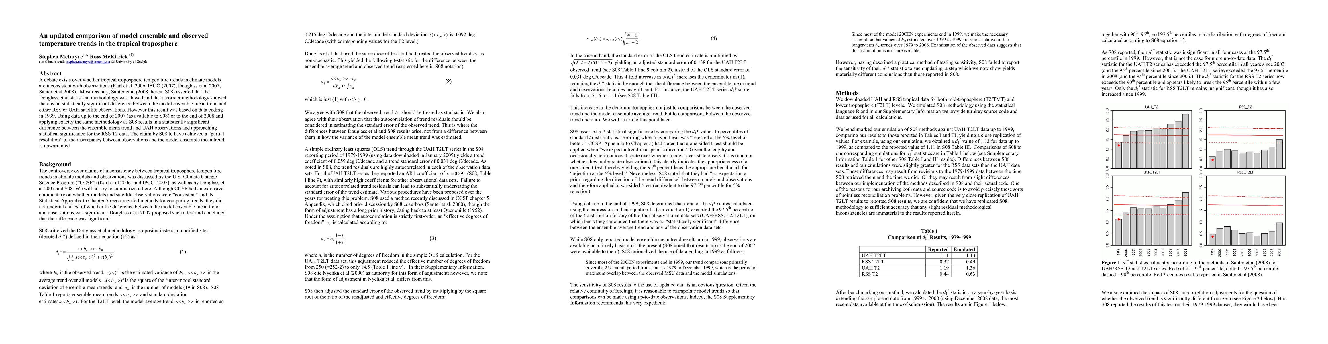 A debate exists over whether tropical troposphere temperature trends in climate models are inconsistent with observations (Karl et al. 2006, IPCC (2007), Douglass et al 2007, Santer et al 2008). Most recently, Santer et al (2008, herein S08) asserted that the Douglass et al statistical methodology was flawed and that a correct methodology showed there is no statistically significant difference between the model ensemble mean trend and either RSS or UAH satellite observations. However this result was based on data ending in 1999. Using data up to the end of 2007 (as available to S08) or to the end of 2008 and applying exactly the same methodology as S08 results in a statistically significant difference between the ensemble mean trend and UAH observations and approaching statistical significance for the RSS T2 data. The claim by S08 to have achieved a "partial resolution" of the discrepancy between observations and the model ensemble mean trend is unwarranted.