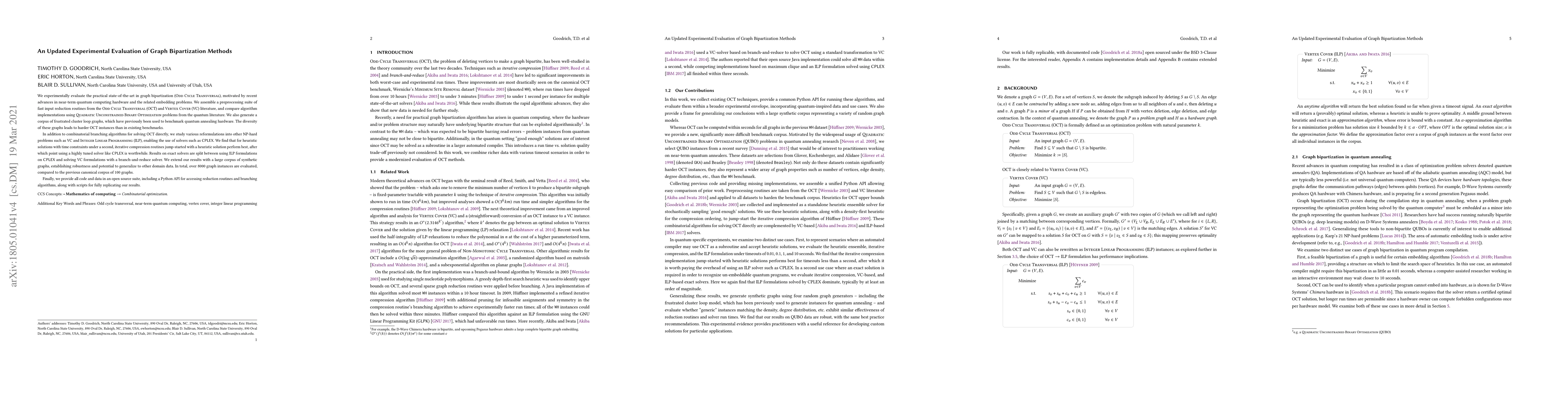 We experimentally evaluate the practical state-of-the-art in graph bipartization (Odd Cycle Transversal), motivated by recent advances in near-term quantum computing hardware and the related embedding problems. We assemble a preprocessing suite of fast input reduction routines from the Odd Cycle Transversal (OCT) and Vertex Cover (VC) literature, and compare algorithm implementations using Quadratic Unconstrained Binary Optimization problems from the quantum literature. We also generate a corpus of frustrated cluster loop graphs, which have previously been used to benchmark quantum annealing hardware. The diversity of these graphs leads to harder OCT instances than in existing benchmarks. In addition to combinatorial branching algorithms for solving OCT directly, we study various reformulations into other NP-hard problems such as VC and Integer Linear Programming (ILP), enabling the use of solvers such as CPLEX. We find that for heuristic solutions with time constraints under a second, iterative compression routines jump-started with a heuristic solution perform best, after which point using a highly tuned solver like CPLEX is worthwhile. Results on exact solvers are split between using ILP formulations on CPLEX and solving VC formulations with a branch-and-reduce solver. We extend our results with a large corpus of synthetic graphs, establishing robustness and potential to generalize to other domain data. In total, over 8000 graph instances are evaluated, compared to the previous canonical corpus of 100 graphs. Finally, we provide all code and data in an open source suite, including a Python API for accessing reduction routines and branching algorithms, along with scripts for fully replicating our results.