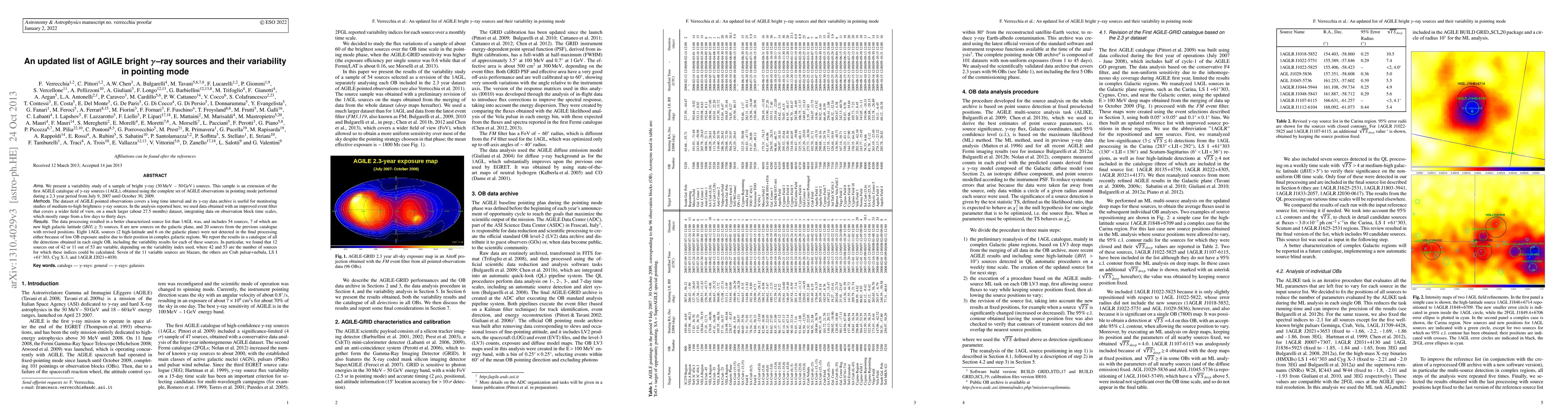 We present a variability study of a sample of bright gamma-ray (30 MeV -- 50 GeV) sources. This sample is an extension of the first AGILE catalogue of gamma-ray sources (1AGL), obtained using the complete set of AGILE observations in pointing mode performed during a 2.3 year period from July 9, 2007 until October 30, 2009. The dataset of AGILE pointed observations covers a long time interval and its gamma-ray data archive is useful for monitoring studies of medium-to-high brightness gamma-ray sources. In the analysis reported here, we used data obtained with an improved event filter that covers a wider field of view, on a much larger (about 27.5 months) dataset, integrating data on observation block time scales, which mostly range from a few days to thirty days. The data processing resulted in a better characterized source list than 1AGL was, and includes 54 sources, 7 of which are new high galactic latitude (|BII| >= 5) sources, 8 are new sources on the galactic plane, and 20 sources from the previous catalogue with revised positions. Eight 1AGL sources (2 high-latitude and 6 on the galactic plane) were not detected in the final processing either because of low OB exposure and/or due to their position in complex galactic regions. We report the results in a catalogue of all the detections obtained in each single OB, including the variability results for each of these sources. In particular, we found that 12 sources out of 42 or 11 out of 53 are variable, depending on the variability index used, where 42 and 53 are the number of sources for which these indices could be calculated. Seven of the 11 variable sources are blazars, the others are Crab pulsar+nebula, LS I +61{\deg}303, Cyg X-3, and 1AGLR J2021+4030.