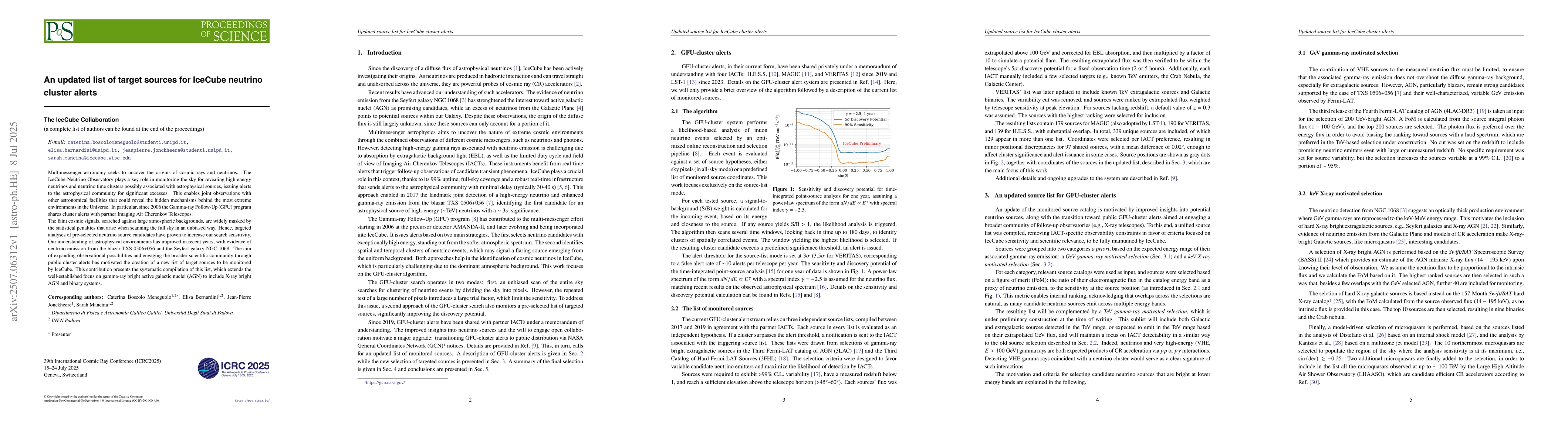 Multimessenger astronomy seeks to uncover the origins of cosmic rays and neutrinos. The IceCube Neutrino Observatory plays a key role in monitoring the sky for revealing high energy neutrinos and neutrino time clusters possibly associated with astrophysical sources, issuing alerts to the astrophysical community for significant excesses. This enables joint observations with other astronomical facilities that could reveal the hidden mechanisms behind the most extreme environments in the Universe. In particular, since 2006 the Gamma-ray Follow-Up (GFU) program shares cluster alerts with partner Imaging Air Cherenkov Telescopes. The faint cosmic signals, searched against large atmospheric backgrounds, are widely masked by the statistical penalties that arise when scanning the full sky in an unbiased way. Hence, targeted analyses of pre-selected neutrino source candidates have proven to increase our search sensitivity. Our understanding of astrophysical environments has improved in recent years, with evidence of neutrino emission from the blazar TXS 0506+056 and the Seyfert galaxy NGC 1068. The aim of expanding observational possibilities and engaging the broader scientific community through public cluster alerts has motivated the creation of a new list of target sources to be monitored by IceCube. This contribution presents the systematic compilation of this list, which extends the well-established focus on gamma-ray bright active galactic nuclei (AGN) to include X-ray bright AGN and binary systems.