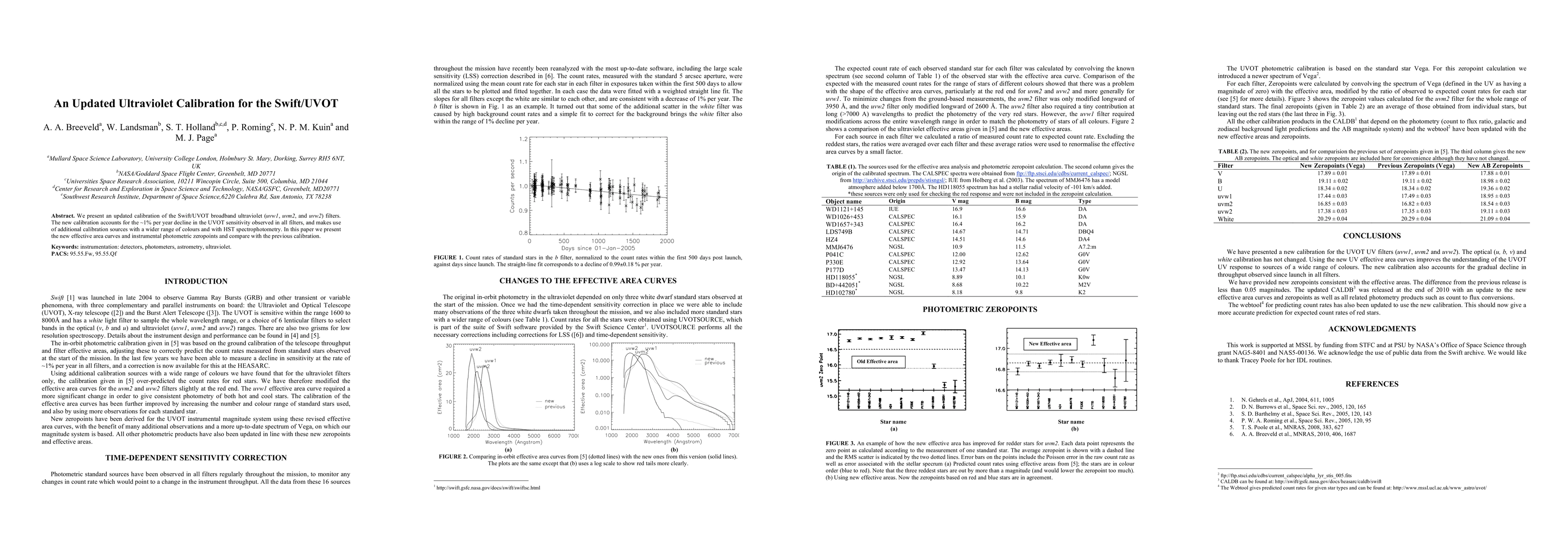 This paper updates the calibration for the Swift/UVOT ultraviolet filters, addressing a ~1% annual sensitivity decline and incorporating new calibration sources with HST spectrophotometry. The new effective area curves and photometric zeropoints are presented and compared to previous calibrations.