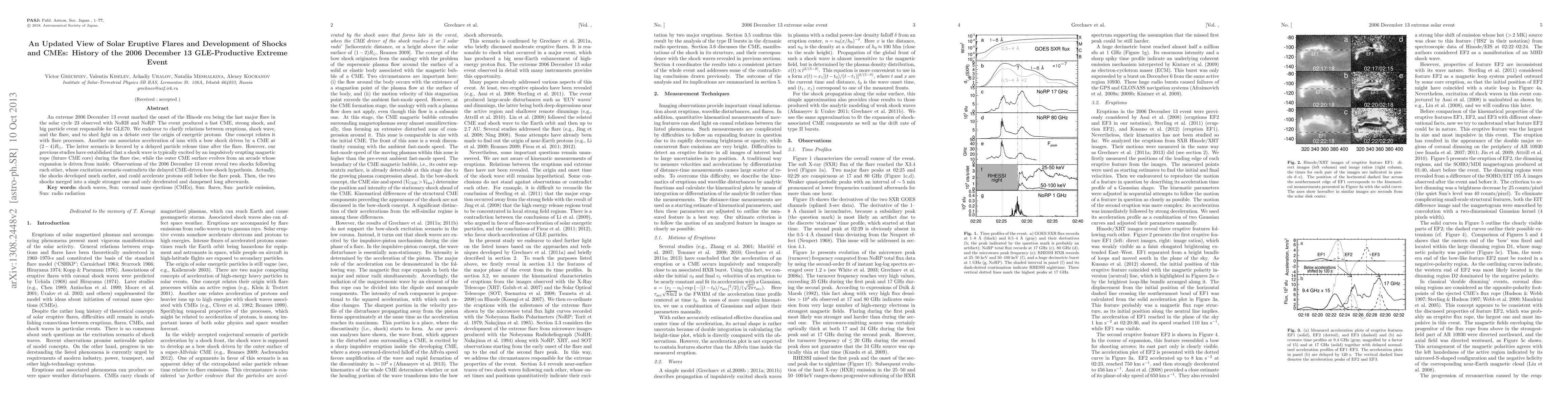 This paper examines the 2006 December 13 solar eruptive event, which produced a fast CME, strong shock, and energetic particles causing GLE70. It challenges the delayed CME-driven bow shock hypothesis for energetic proton acceleration, suggesting instead that shocks formed early during the flare, potentially accelerating protons before the flare peak.