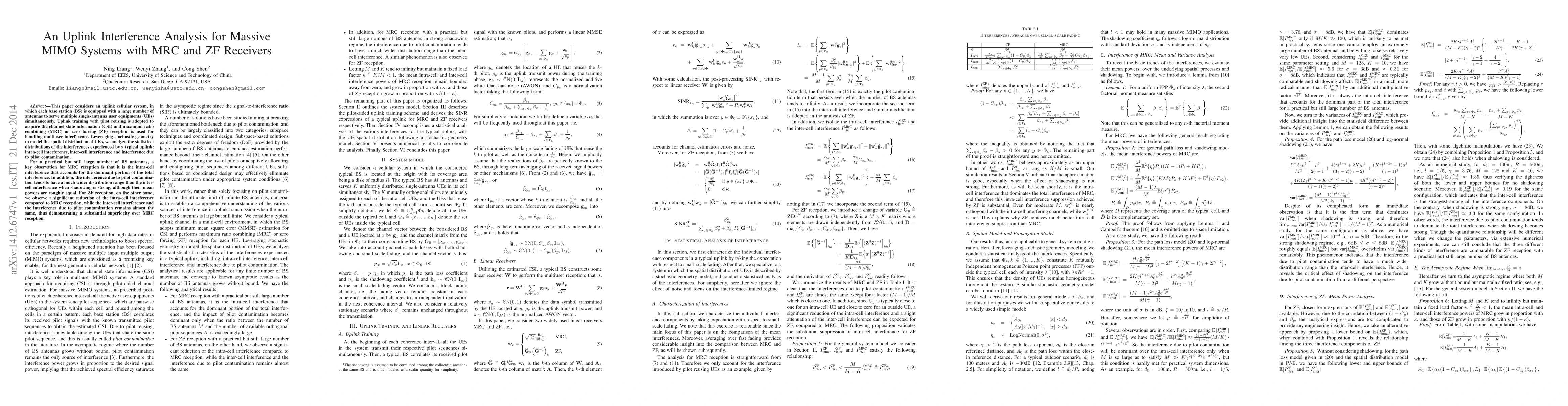 This paper analyzes uplink interference in massive MIMO systems using MRC and ZF receivers, finding that MRC primarily deals with intra-cell interference while ZF significantly reduces intra-cell interference at the cost of unchanged inter-cell and pilot contamination interference.