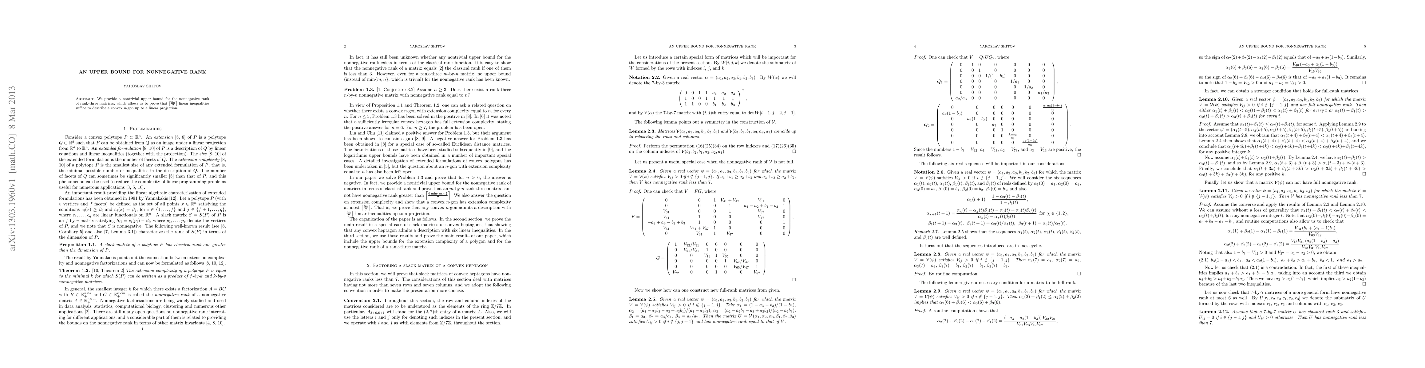 Researchers have found a way to describe a convex polygon with only [6(n+1)/7] linear inequalities, providing an upper bound for nonnegative rank of rank-three matrices.
