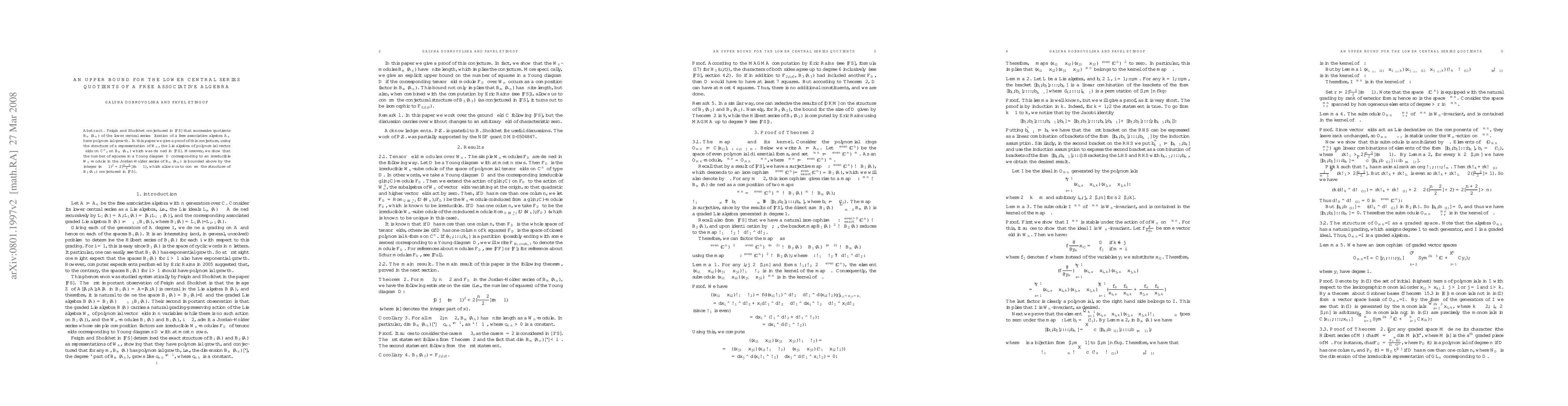 Feigin and Shoikhet conjectured in math/0610410 that successive quotients $B_m(A_n)$ of the lower central series filtration of a free associative algebra $A_n$ have polynomial growth. In this paper we give a proof of this conjecture, using the structure of $W_n$-representation on $B_m(A_n)$ which was defined in math/0610410 . We also prove that the number of squares in a Young diagram $D$ corresponding to an irreducible $W_n$-module in the Jordan-Holder series of $B_m(A_n)$ is bounded above by the integer $(m-1)^2+2[(n-2)/2](m-1)$. This bound combined with MAGMA computations by Rains in math/0610410 allows us to confirm the $W_n$-module structure of $B_3(A_3)$ conjectured in math/0610410 .