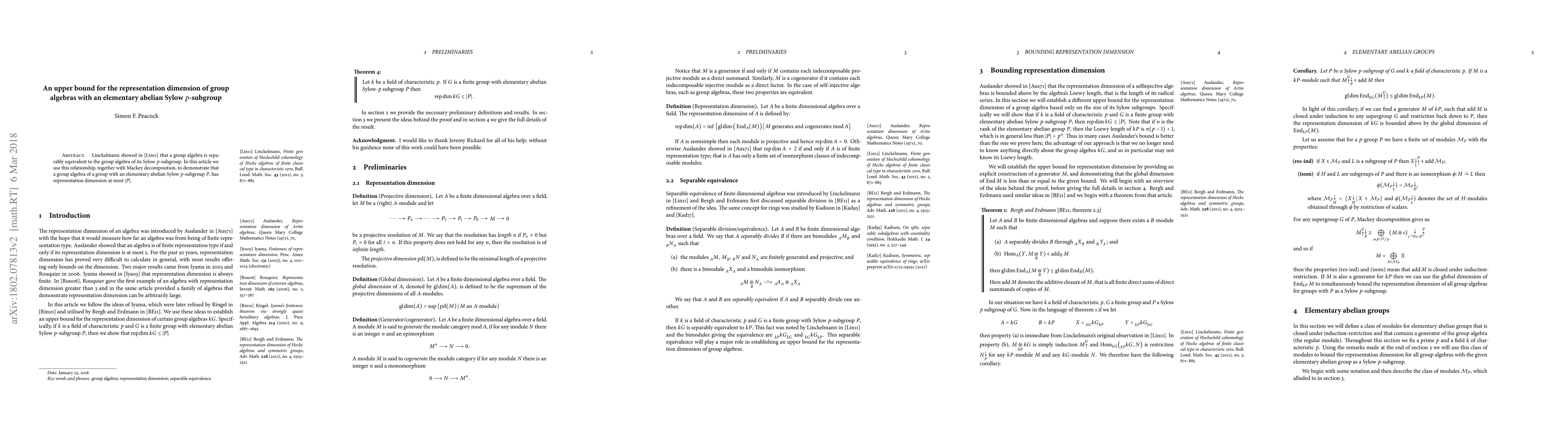 Linckelmann showed in 2011 that a group algebra is separably equivalent to the group algebra of its Sylow p-subgroups. In this article we use this relationship, together with Mackey decomposition, to demonstrate that a group algebra of a group with an elementary abelian Sylow $p$-subgroup $P$, has representation dimension at most $|P|$.