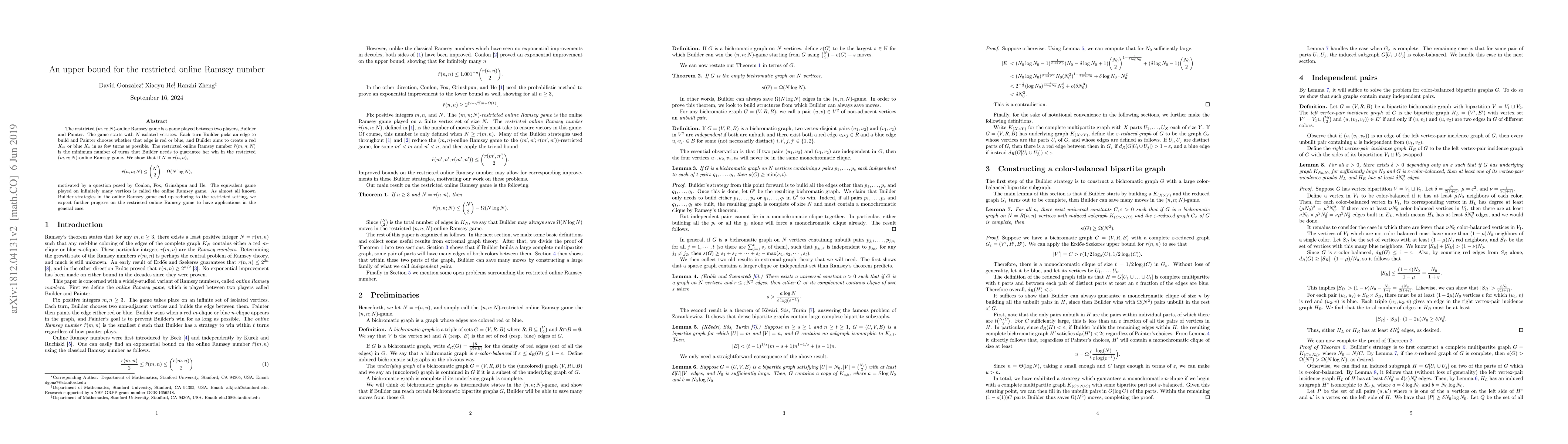 Researchers found an upper bound for the number of turns needed to guarantee a win in the restricted online Ramsey game, which involves building red or blue complete subgraphs on a graph with N isolated vertices.