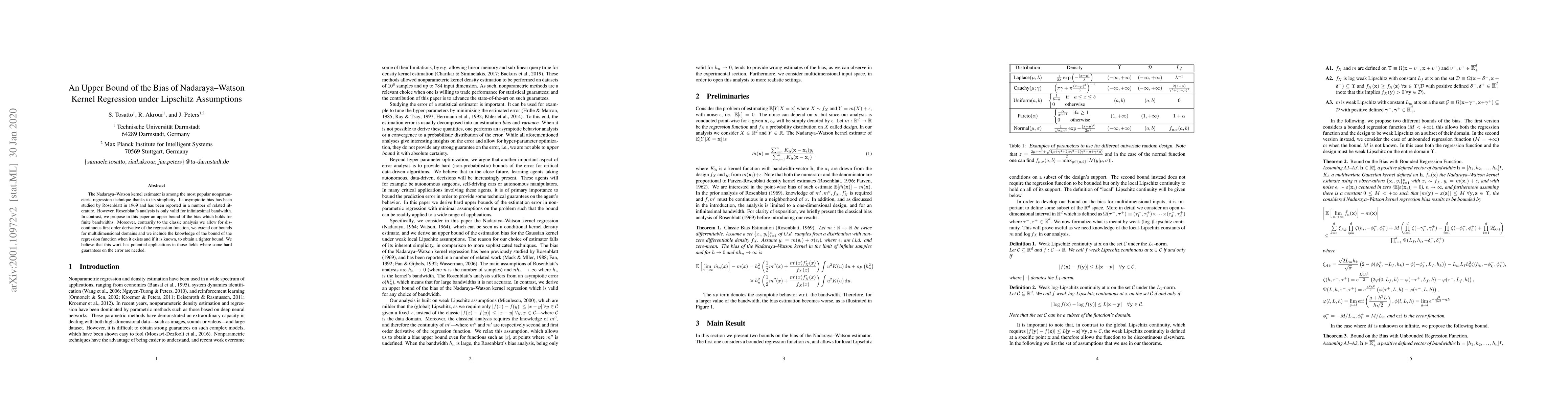 This paper proposes an upper bound for the bias of the Nadaraya-Watson kernel regression estimator under Lipschitz assumptions, providing a tighter bound than previous studies that only applied to infinitesimal bandwidths.