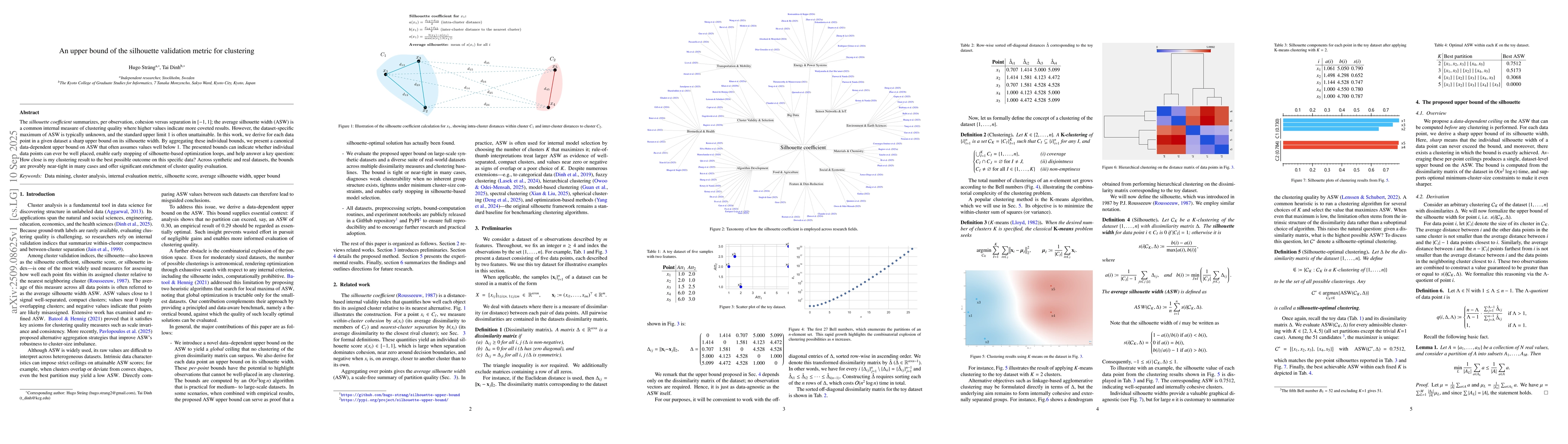 The silhouette coefficient summarizes, per observation, cohesion versus separation in [-1, 1]; the average silhouette width (ASW) is a common internal measure of clustering quality where higher values indicate more coveted results. However, the dataset-specific maximum of ASW is typically unknown, and the standard upper limit 1 is often unattainable. In this work, we derive for each data point in a given dataset a sharp upper bound on its silhouette width. By aggregating these individual bounds, we present a canonical data-dependent upper bound on ASW that often assumes values well below 1. The presented bounds can indicate whether individual data points can ever be well placed, enable early stopping of silhouette-based optimization loops, and help answer a key question: How close is my clustering result to the best possible outcome on this specific data? Across synthetic and real datasets, the bounds are provably near-tight in many cases and offer significant enrichment of cluster quality evaluation.