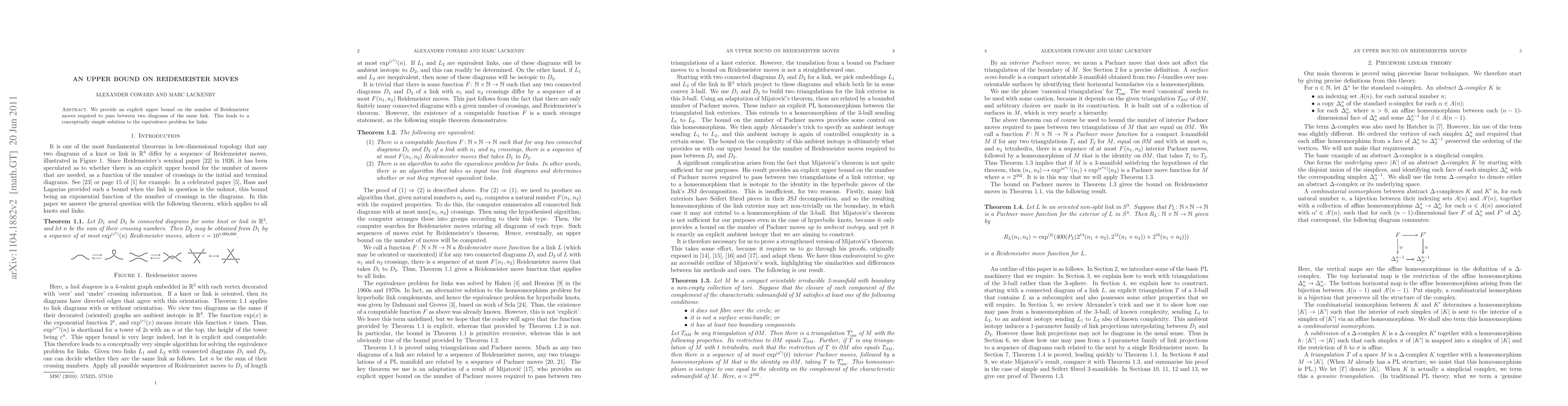 Summary: This paper establishes an explicit upper bound on the number of Reidemeister moves needed to transform one link diagram into another, offering a straightforward approach to solving the link equivalence problem.